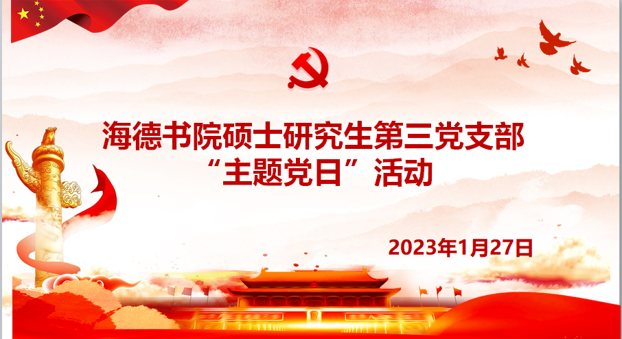 2023年1月27日,yl88858永利集团硕士研究生第三党支部按计划顺利开展1月主题党日活动。支部书记江盼同志主持本次学习活动。根据校党委组织部《关于开展好2023年1月和2月组织生活及组织工作的通知》要求及支委会的安排,本次会议主要学习“习近平主席二〇二三年新年贺词”、中国人民政治协商会议第八届海南省委员会第一次会议精神和《求是》杂志刊文《习近平:继承和发扬党的优良革命传统和作风,弘扬延安精神》三个方面的内容。
