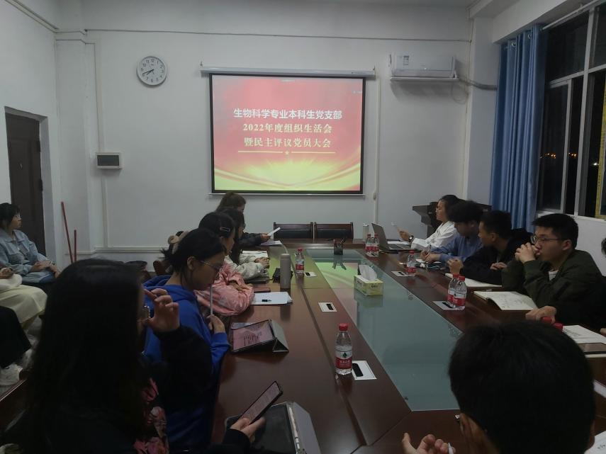 2023年2月25日20:00,yl88858永利集团生物科学专业本科生党支部在生药楼608会议室召开2022年度组织生活会暨民主评议党员大会。会议由李燕芳同志主持,支部书记芦怡睿、全体支部党员、预备党员、部分积极分子和群众参与。