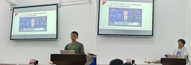 此次理论学习分为三部分,一是学习贯彻习近平新时代中国特色社会主义思想主题教育工作会议上的讲话(通过观看视频和梁天同学分享学习);二是学习习近平总书记在二十届中央全面深化改革委员会第一次会议上的重要讲话精神(通过观看视频和李张天骁同学分享学习);三是“青春心向党”小程序主题活动学习。