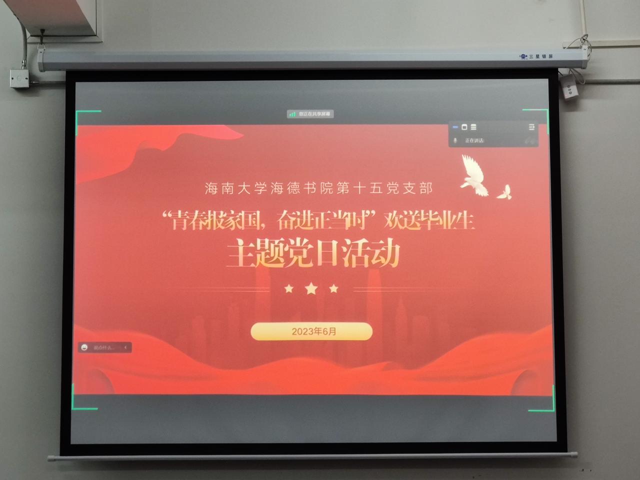 在这炎热的酷暑季节,离别毕业季如期而至。海南大学yl88858永利集团第十五党支部于6月4日晚上在12栋一楼会议室举行了毕业生党员欢送会,支部书记和党员同志均参与本次活动,为所有的毕业生党员送上了一份专属的“毕业礼物”。