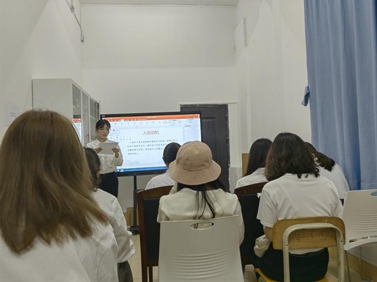 本支部党员共有19名,实到会党员14名,请假缺席5名,其中参与本次大会且有表决权的党员共9名。本支部发展对象共有一名,为钟玮琳同志。在其介绍了入党动机和积极分子期间的表现情况并经介绍人介绍其预备期间的考察情况后,经支部有表决权的党员同志表决,一致同意接收钟玮琳同志为预备党员。