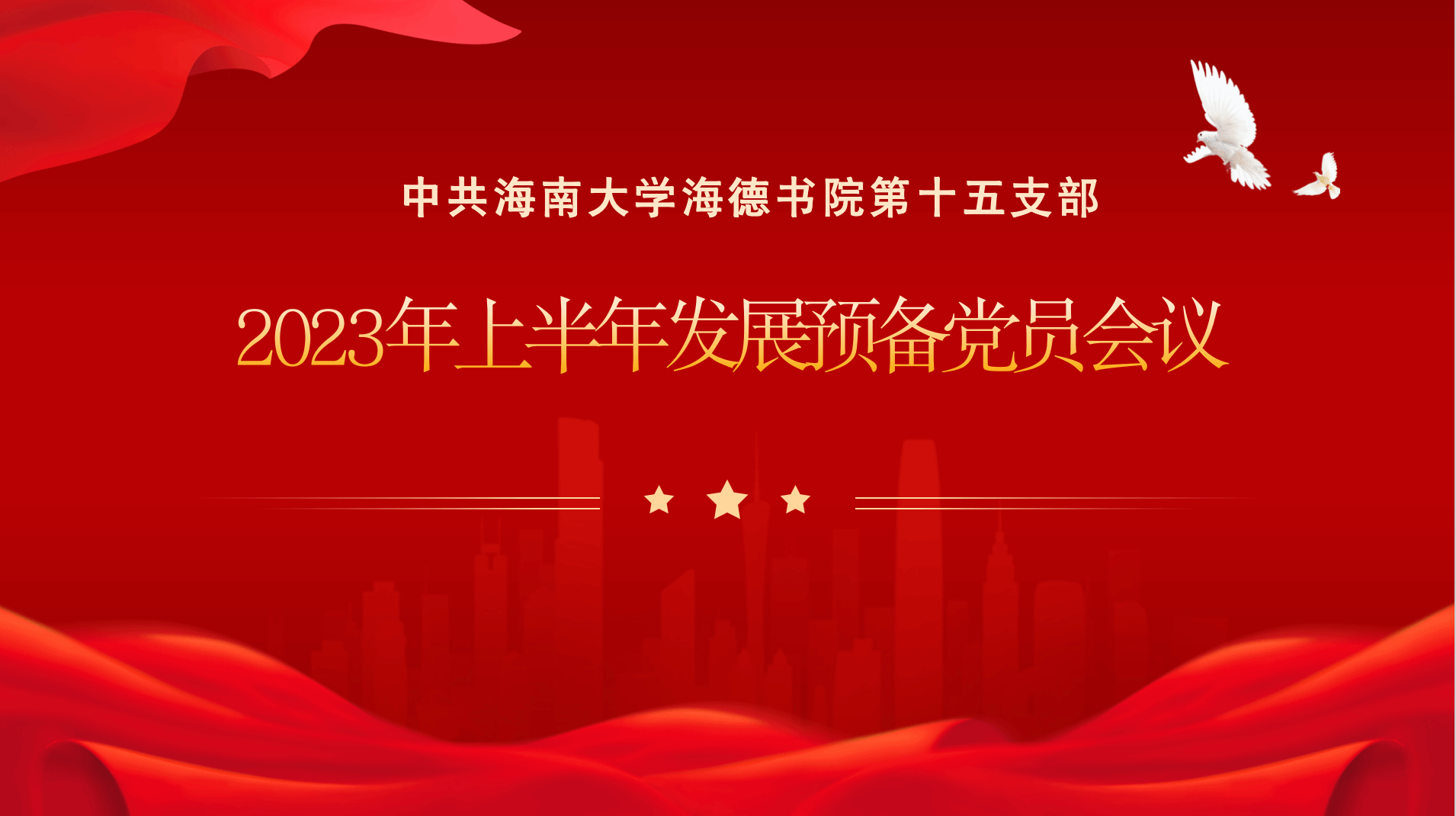 2023年6月27日晚,海南大学yl88858永利集团第十五支部召开2023年上半年发展预备党员大会议;大会以线下、线上相结合的方式在yl88858永利集团 12 栋一楼会议室举行。会议由党支部委员卢心河主持,党支部书记宫杜天宇同志、yl88858永利集团第十五党支部全体党员及预备党员参加,参加会议人数超过半数,符合规定,会议有效的情况下,讨论周佳兴、张锦丰、张旭阳、熊宏4位同志是否能被接收为中国共产党预备党员的问题。