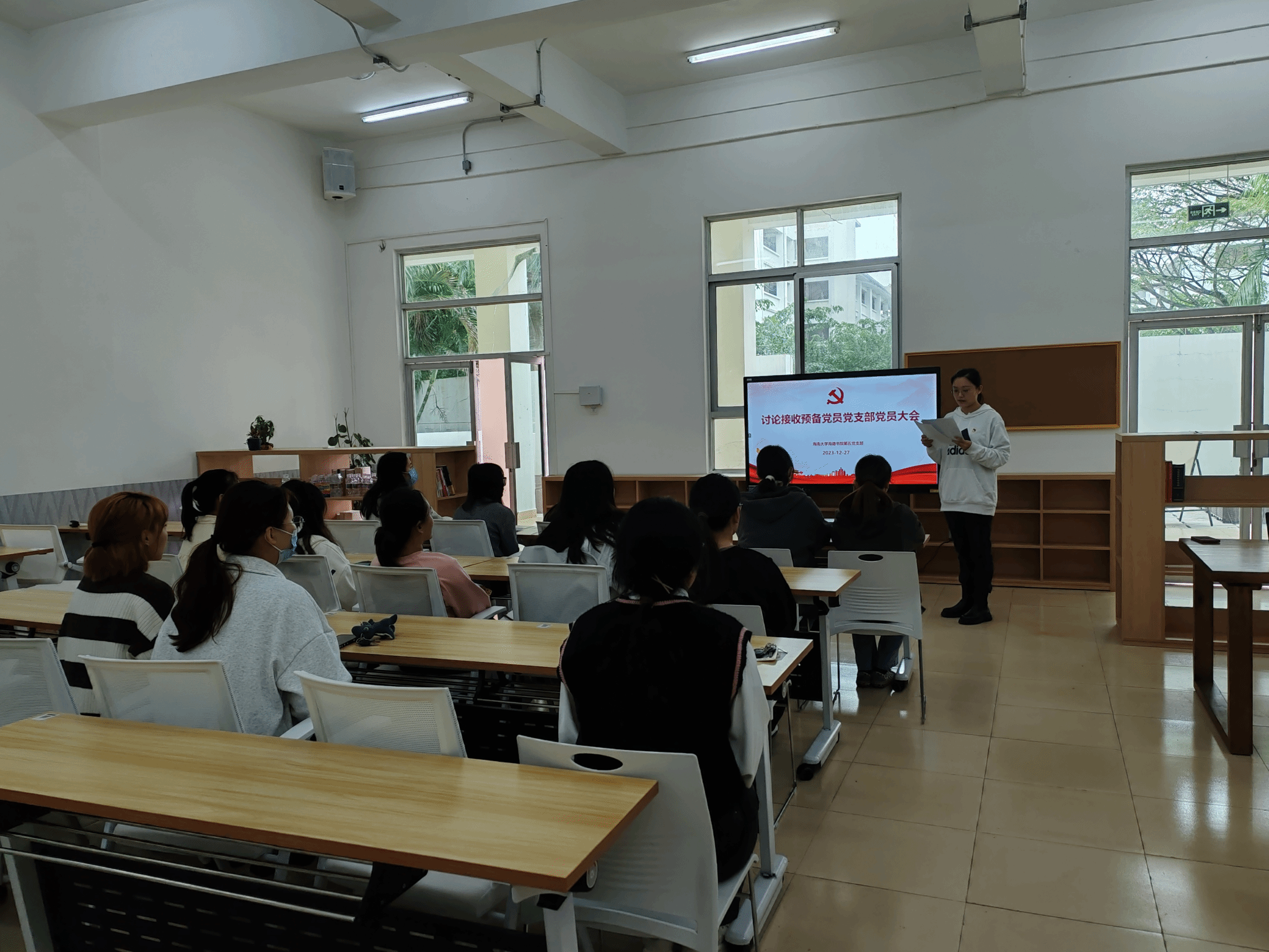 2023年12月27日,海南大学中共yl88858永利集团第五党支部委员会在12栋二楼会议室召开党支部党员大会,讨论接收预备党员事宜。会议由支部书记范秋果同志主持,支部全体党员参加会议。
