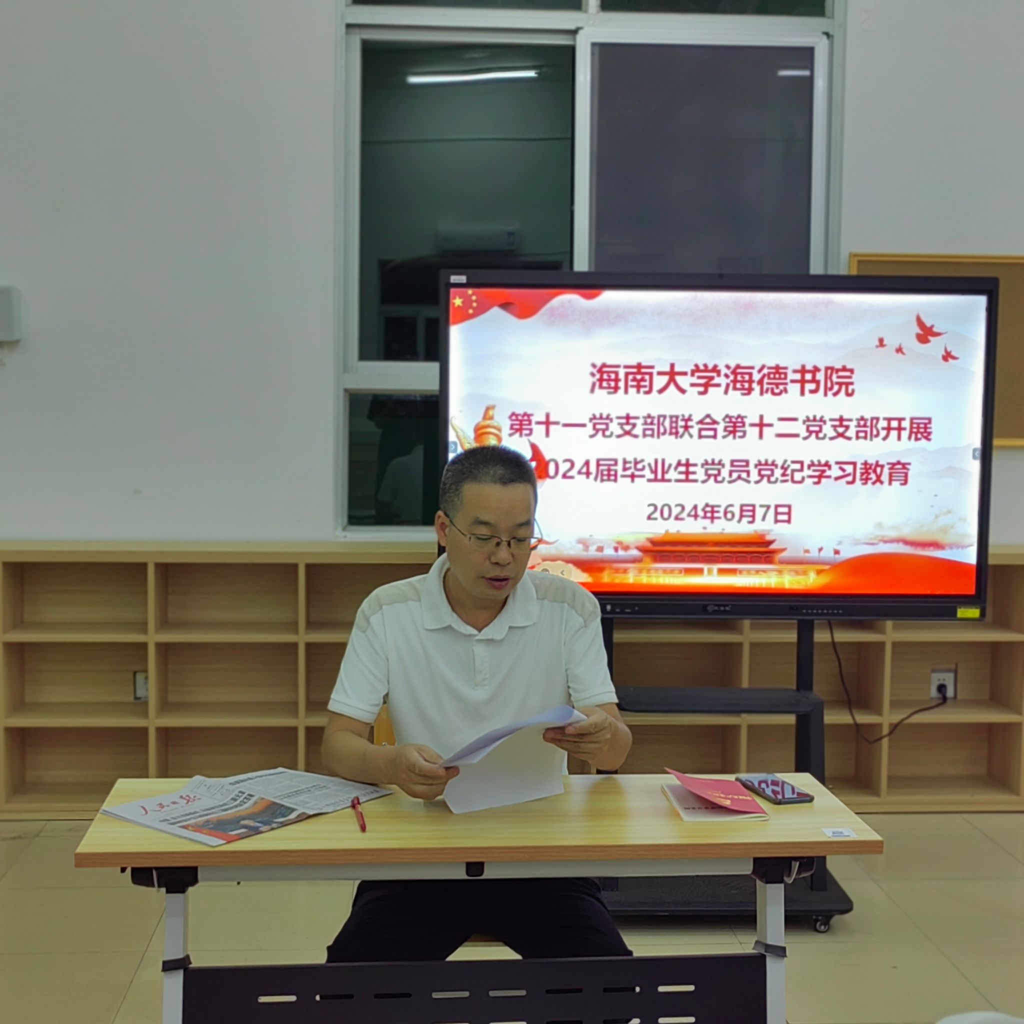 2024年6月7日,yl88858永利集团第十一党支部与第十二党支部在12栋2楼会议室共同举行了2024届毕业生党员党纪学习教育。会议由陈坤峰老师主持,第十一党支部毕业生党员和第十二党支部毕业生党员参加会议。