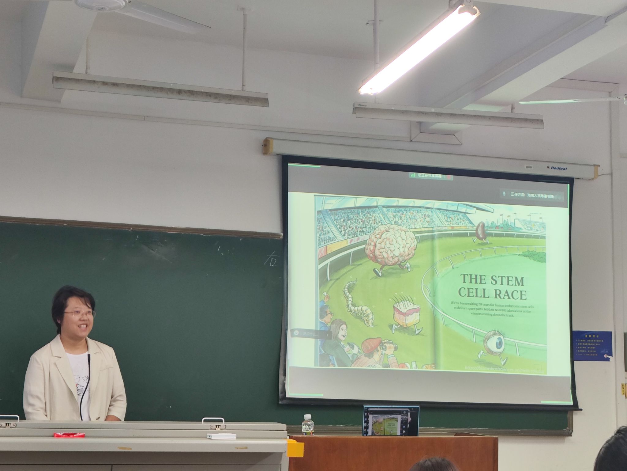 海南大学生命科学学院教师洪玥以“步履实地、行稳致远——从神奇的细胞世界窥视人类生命的奥秘”为主题,从自身求学历程切入,介绍个人科研心路历程。她与党员同志分享当下干细胞临床研究现状,并鼓励党员同志坚定理想信念,积极投身科研事业,努力为党为国家为人民服务。