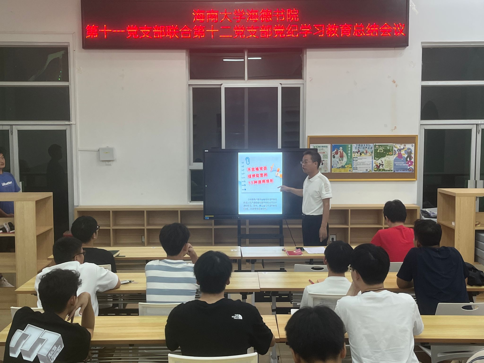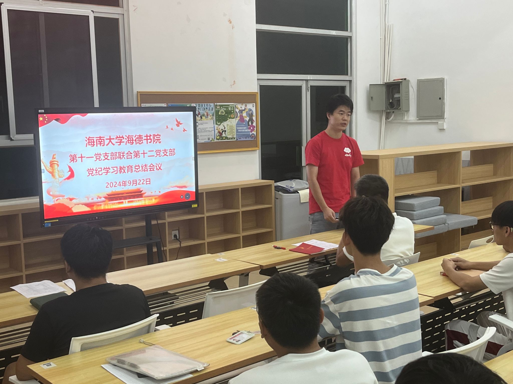 会议开始,陈老师对两个支部自2024年4月份以来开展党纪学习教育主要做法、取得成效、存在的不足以及下一步工作等方面进行工作总结。他强调各位党员同志要持续加强党纪党规学习,提高底线、严于律己、遵守校规校纪;要不断提升纪律素养,“知边界”“知敬畏”;要树立对纪律的信奉和敬仰。