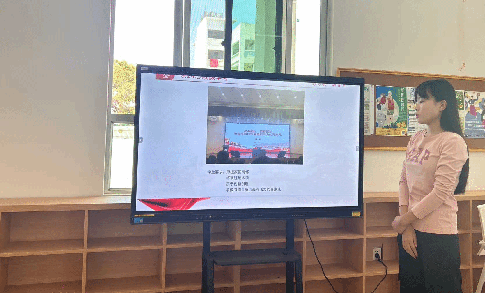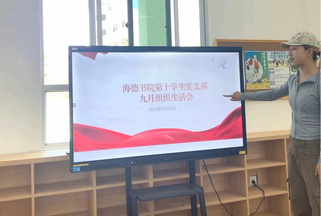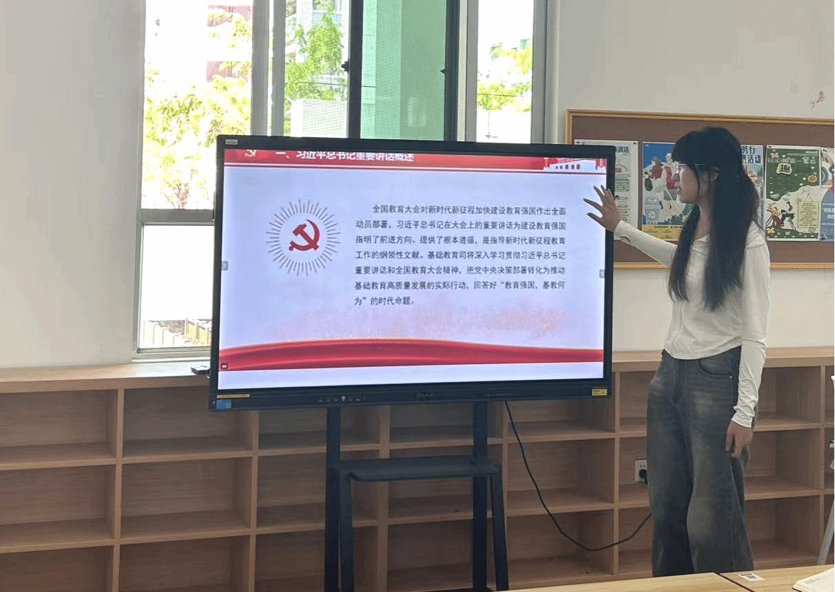积极分子余典同志带领学习了全国教育大会精神并结合分享她在暑假支教经历,作为艺术生为主的党支部,让我们切实了解到如何结合自己的专业技能实现学生素质提升,真正实现教育高质量发展。