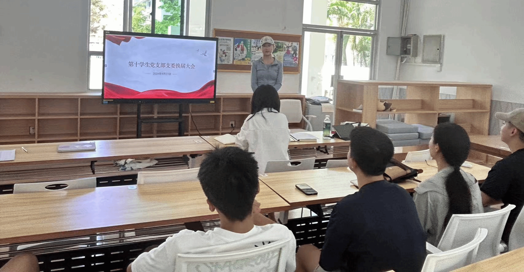 根据党章和上级有关文件规定,召开全体党员大会,本次全体党员大会由同志主持,主要任务为总结汇报本届党支部的工作,进行党支部的换届选举、向各位党员同志阐述其基本岗位与职责。随后,各个党员有序进行选举发言。