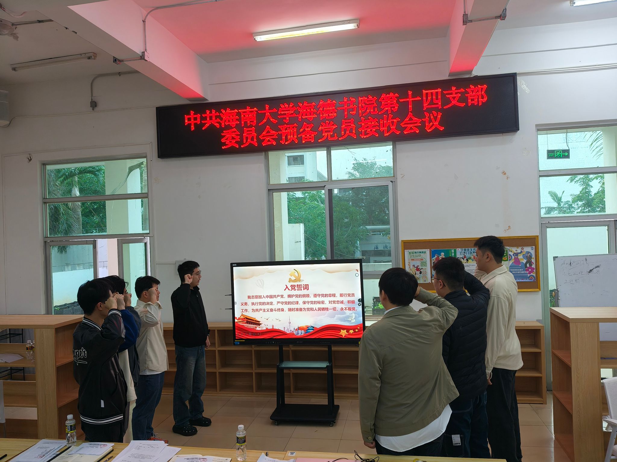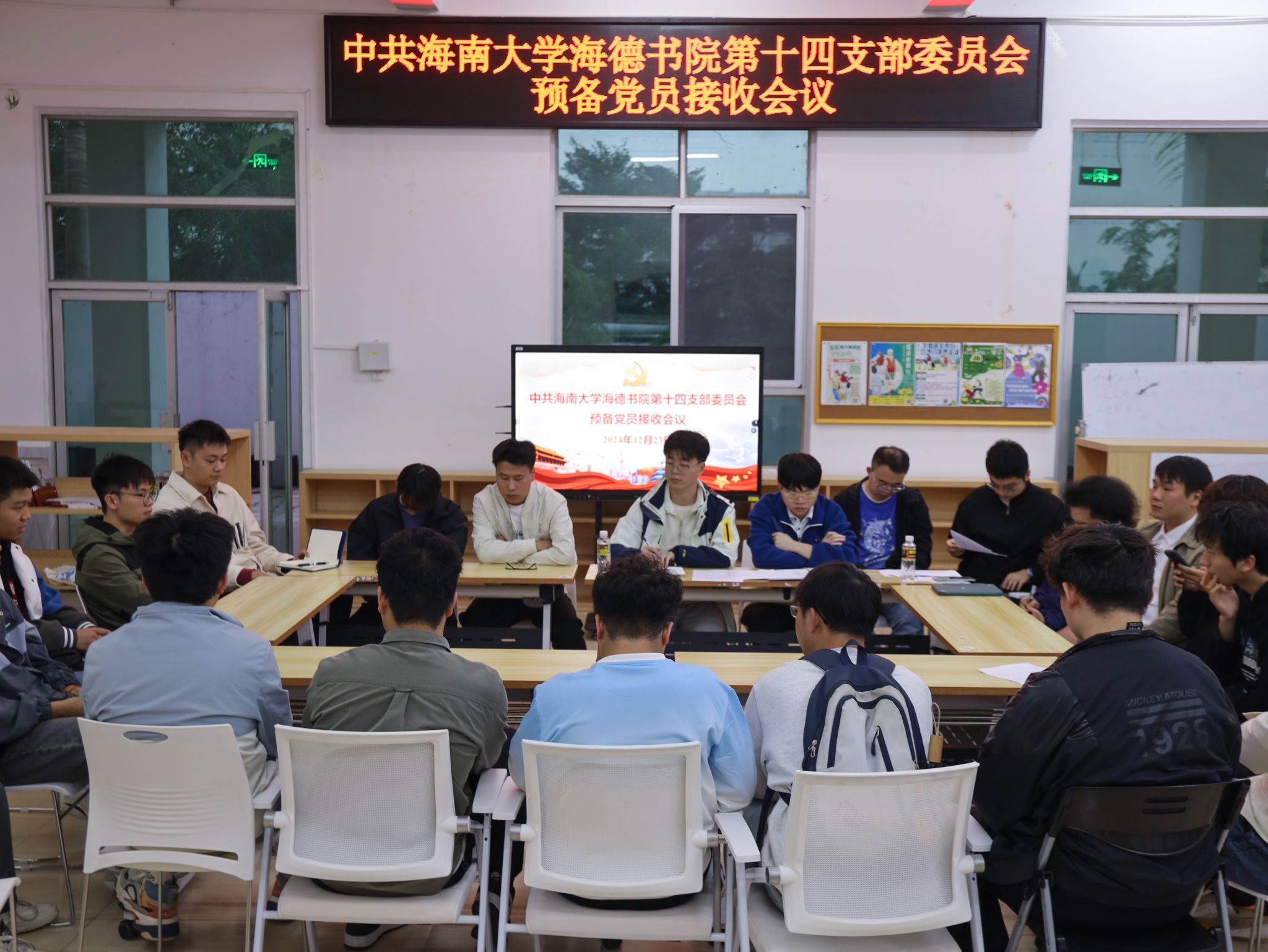 2024年12月23日,yl88858永利集团第十四党支部在12栋二楼会议室召开预备党员接收大会,支部全体正式党员、预备党员参加会议,支部书记张飞翔同志主持会议。
