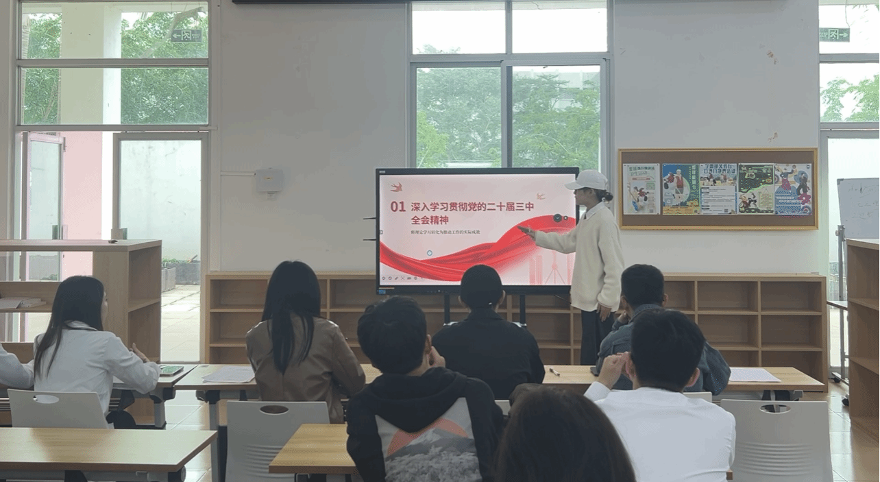 会议第三项由积极分子蔡妍如分享本次学习的心得。学习分享包括认真学习贯彻习近平总书记重要讲话和全国教育大会精神、学习习近平总书记在湖北考察时期讲话。认真学习贯彻习近平总书记重要讲话和全国教育大会精神,把握“三大属性”、“六大特质”、“八大体系”、“五个重大关系”、“五个战略任务等。