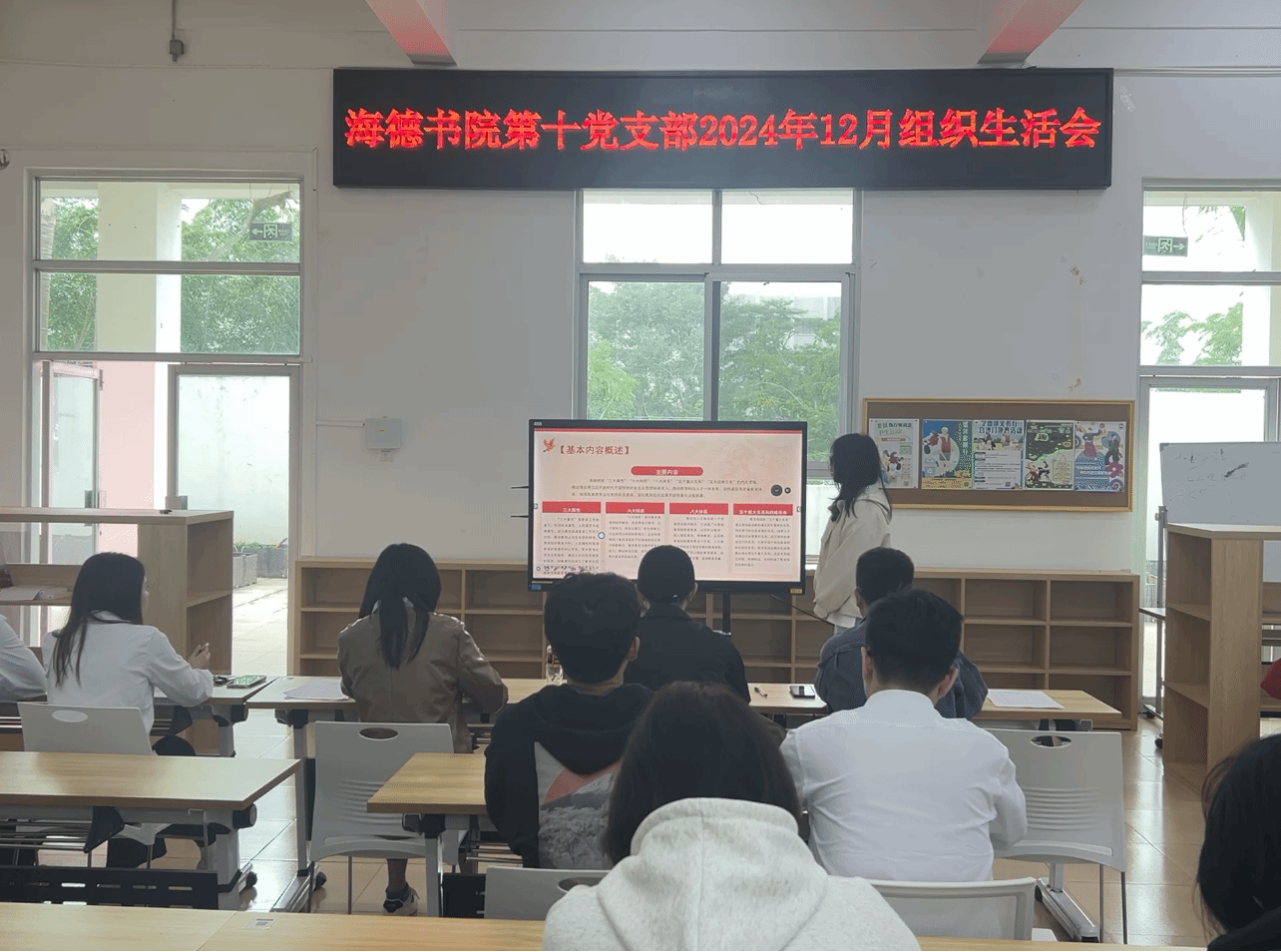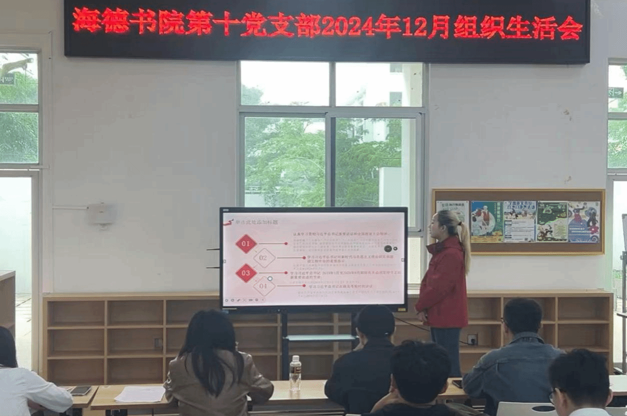 2024年12月24日上午,在12栋2楼会议室举办12月组织生活会,本次会议由支部书记张晓涵老师组织指导,第十党支部全体党员与积极分子参加本次会议。