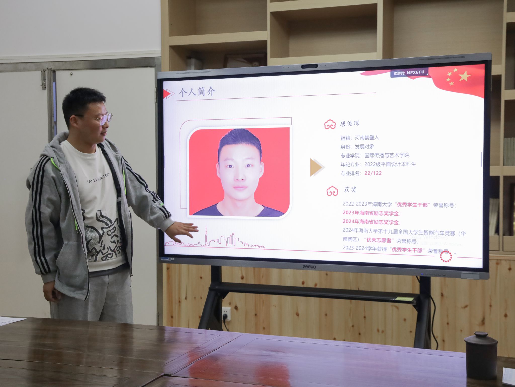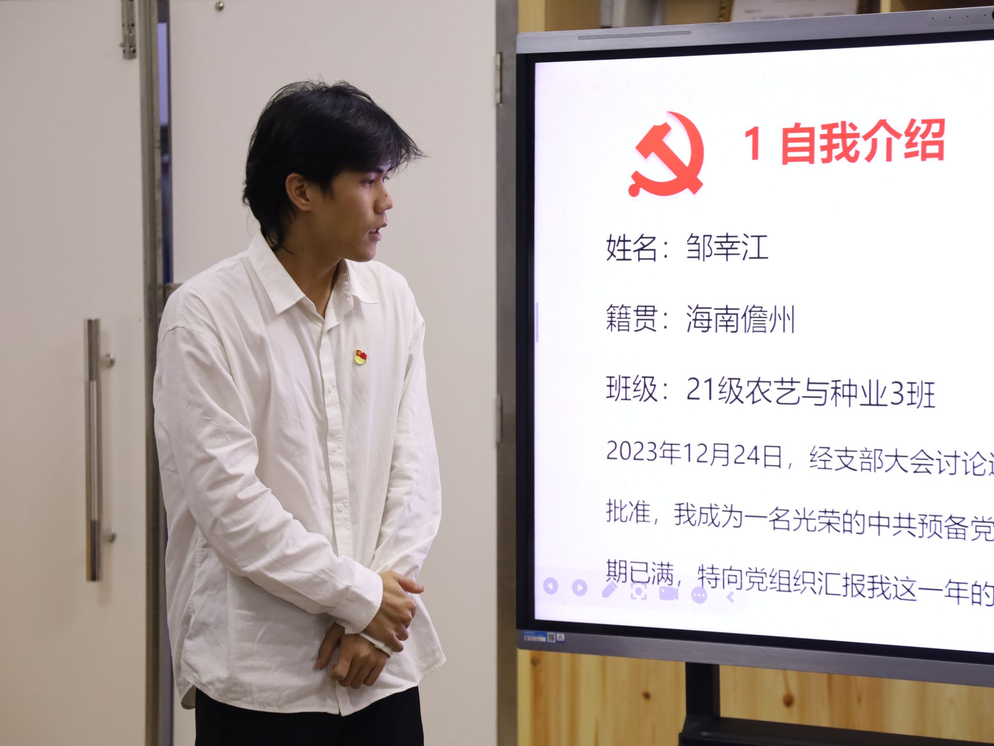 接收预备党员:李杨、唐俊琛两名发展对象,依次汇报自己的情况。