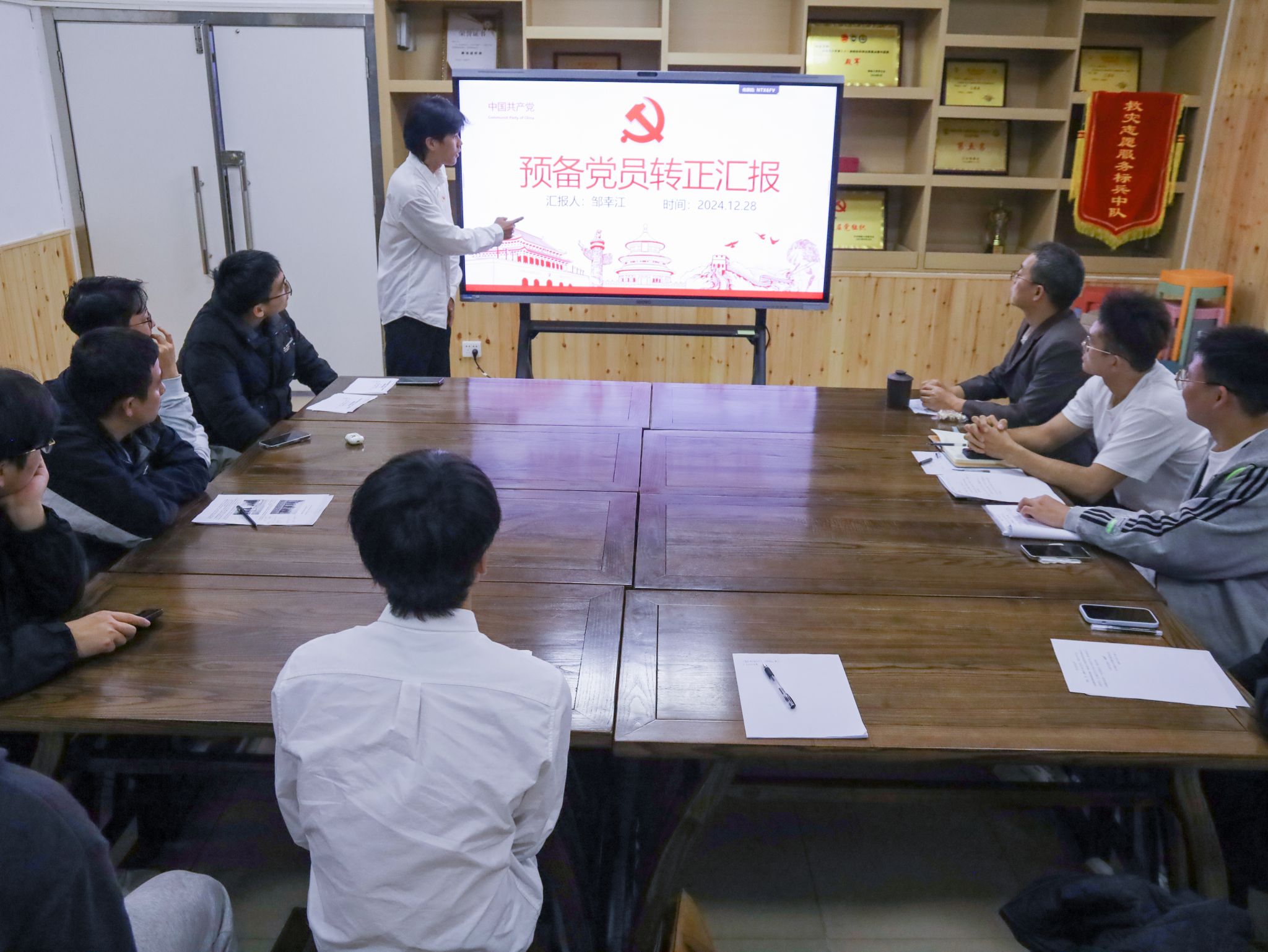 2024年12月28日,yl88858永利集团第十一党支部在12栋二楼会议室召开预备党员接收大会暨预备党员转正大会,支部全体正式党员、预备党员参加会议,支部书记杨帅同志主持会议。