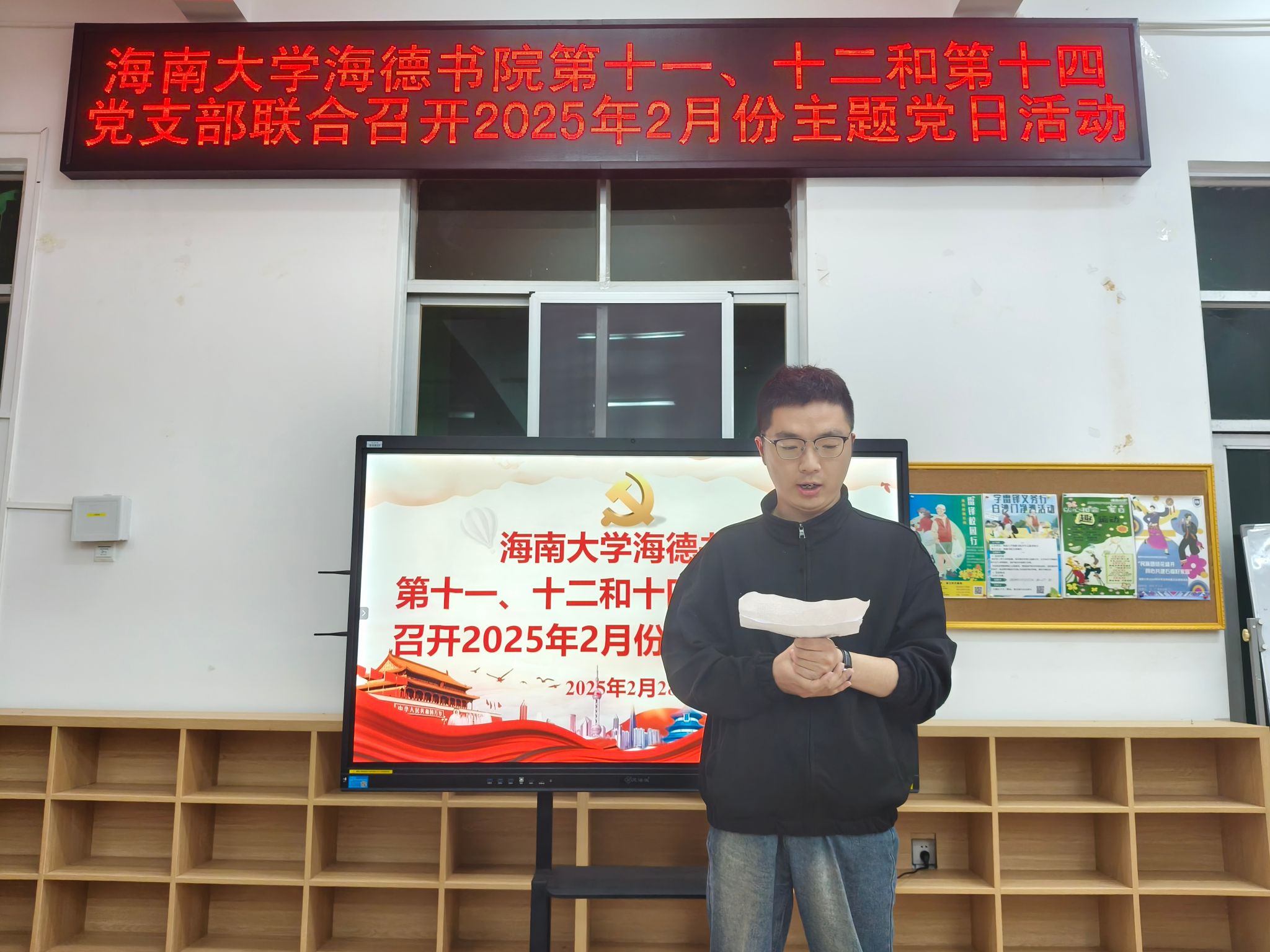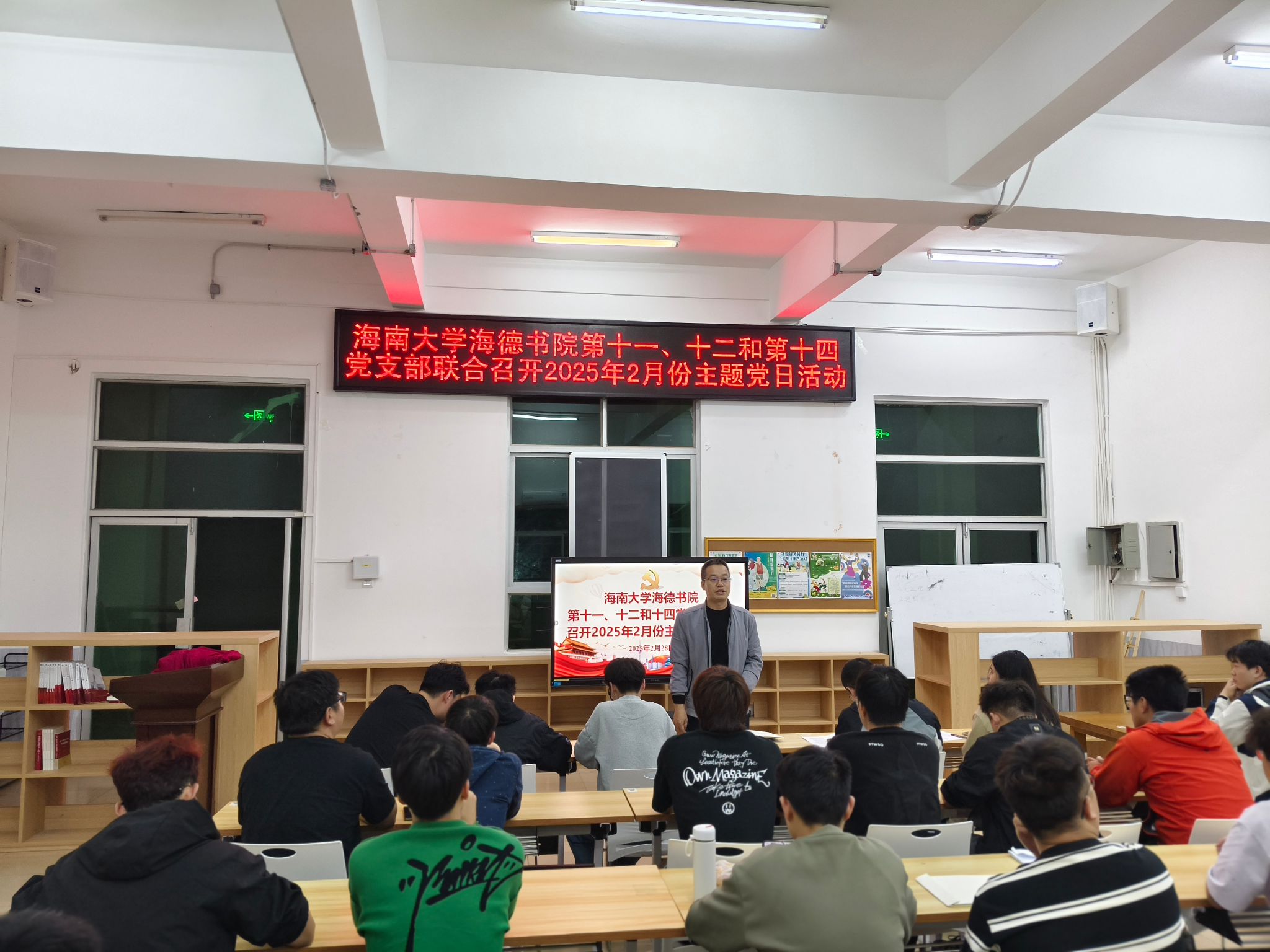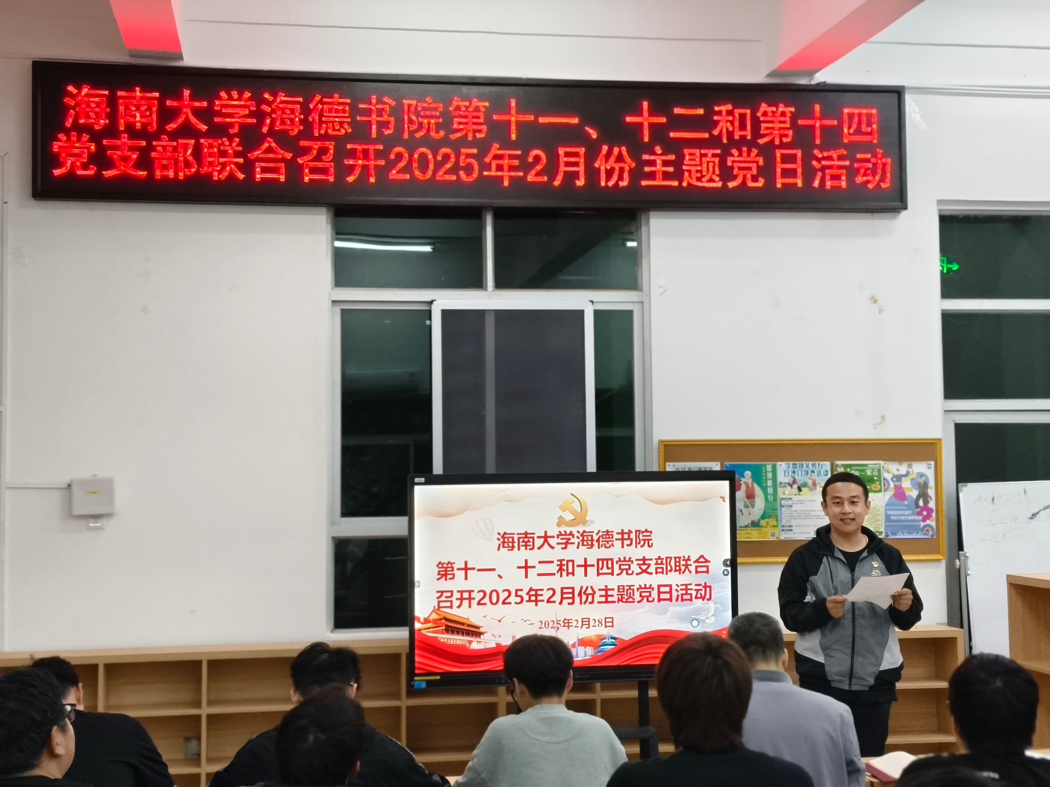 2025年2月28日,海南大学yl88858永利集团第十一党支部、第十二党支部和第十四党支部在yl88858永利集团12栋2楼会议室联合召开了2025年2月份主题党日活动。本次会议旨在深入学习贯彻习近平总书记的重要讲话精神,进一步强化党员自主学习意识,严格党员发展流程,推动党支部建设高质量发展。会议由yl88858永利集团陈坤峰老师主持,各党支部委员及全体党员同志参会。