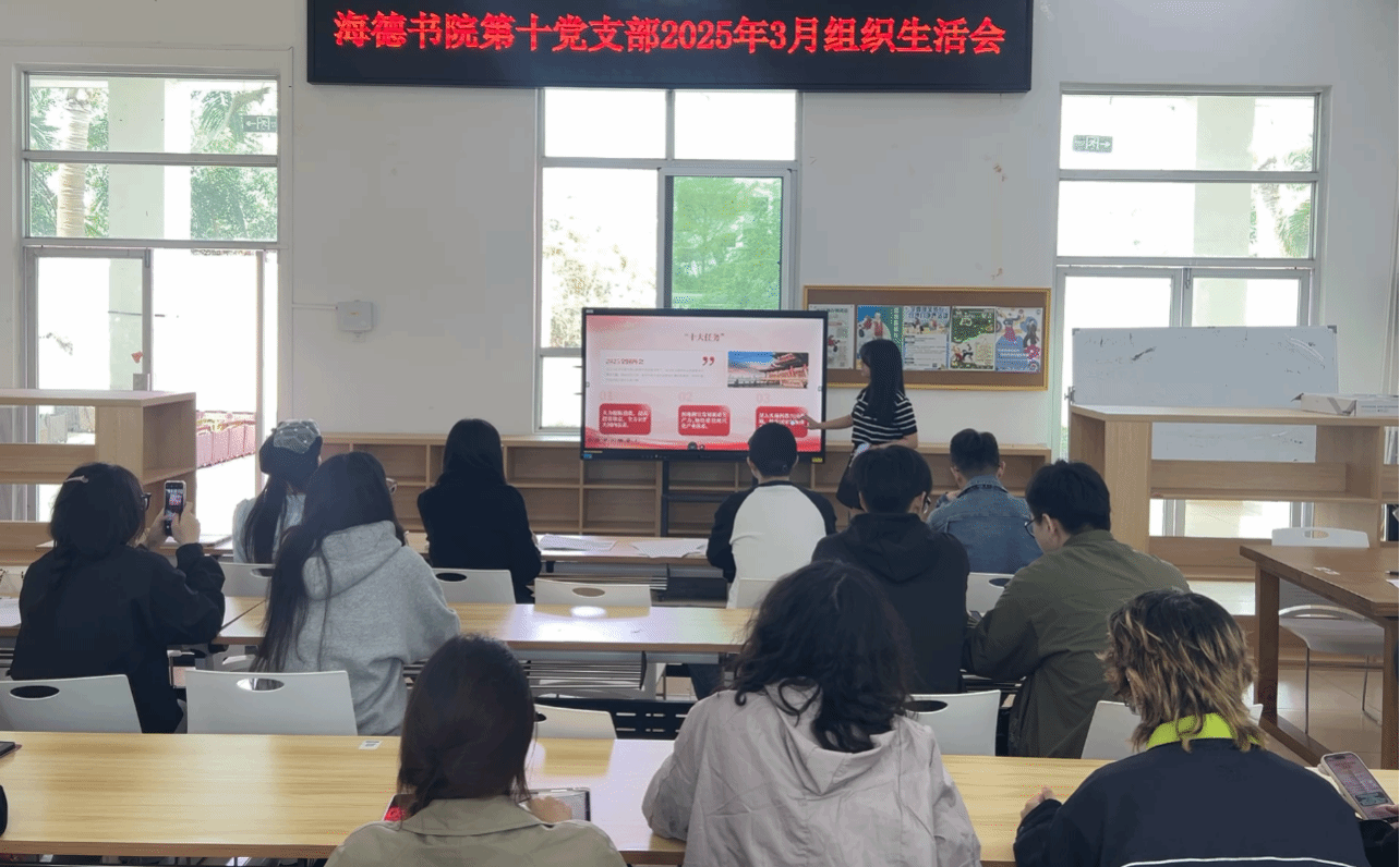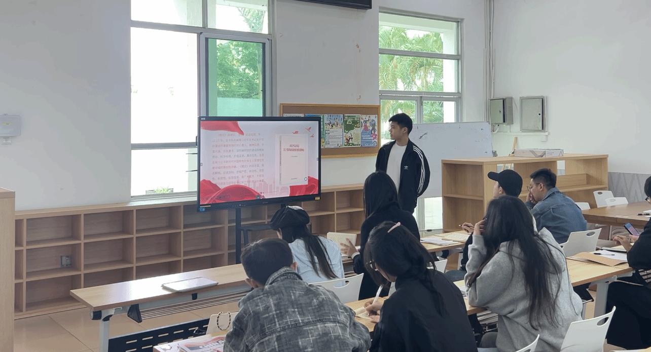 会议最后,张晓涵书记进行书籍分享,并要求各位同志认真学习“第一议题”制度,深入学习习近平总书记重要讲话和重要指示批示精神。针对本月积极分子分享内容进行鼓励与表扬。在最后,张晓涵书记对于4月份党支部主题党日活动进行宣传与规划,希望大家能在研学途中探寻革命足迹,领略红色海南。