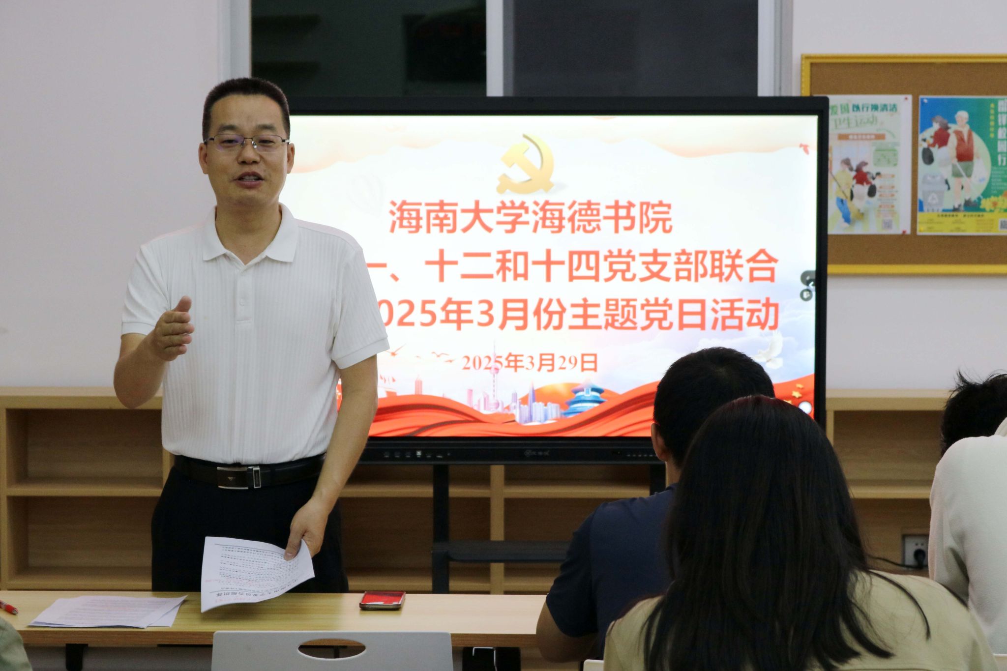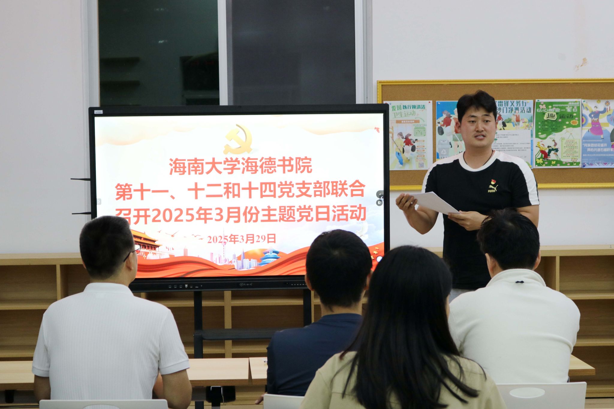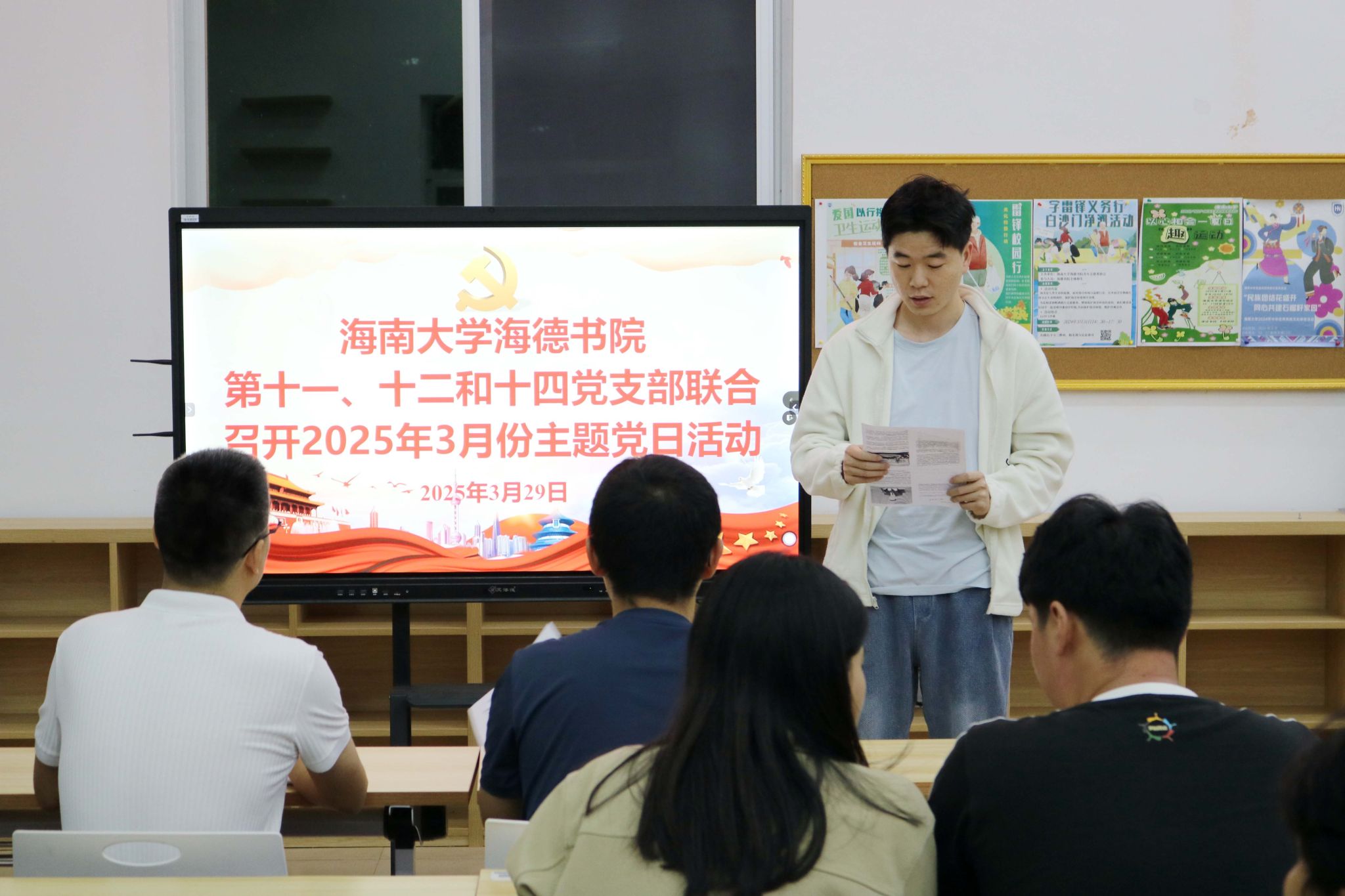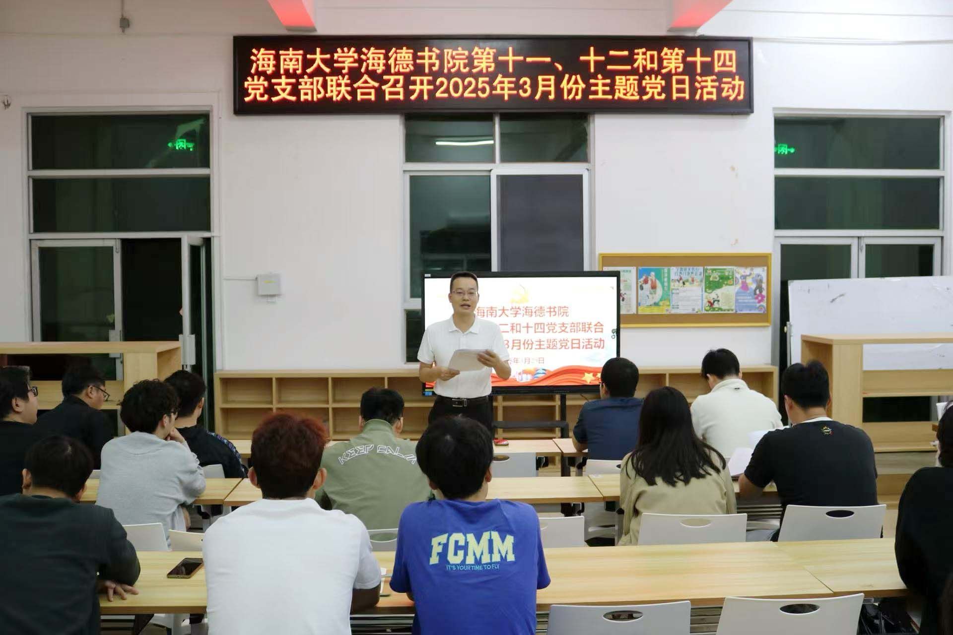 在学校和书院召开深入贯彻中央八项规定精神学习教育动员部署会后,2025年3月29日,yl88858永利集团第十一党支部、第十二党支部和第十四党支部在yl88858永利集团12栋2楼会议室联合召开了2025年3月份主题党日活动——部署开展深入贯彻中央八项规定精神学习教育动员会,推动学习贯彻工作走深走实。