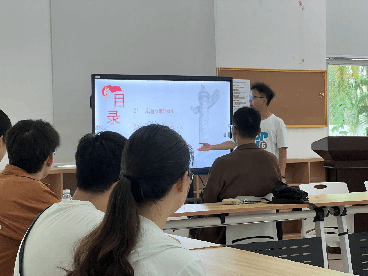 活动首先通过观赏红色电影《碧海丹心》,重温四野将士英勇顽强的战斗精神,感受他们克服重重困难,以弱胜强最终解放海南岛的壮举。随后,梁天同志向大家介绍了第四野战军韩先楚将军力排众议、振奋军心,凭借超前的战略眼光判断形势变化,抓住时机成功解放海南岛的感人故事。