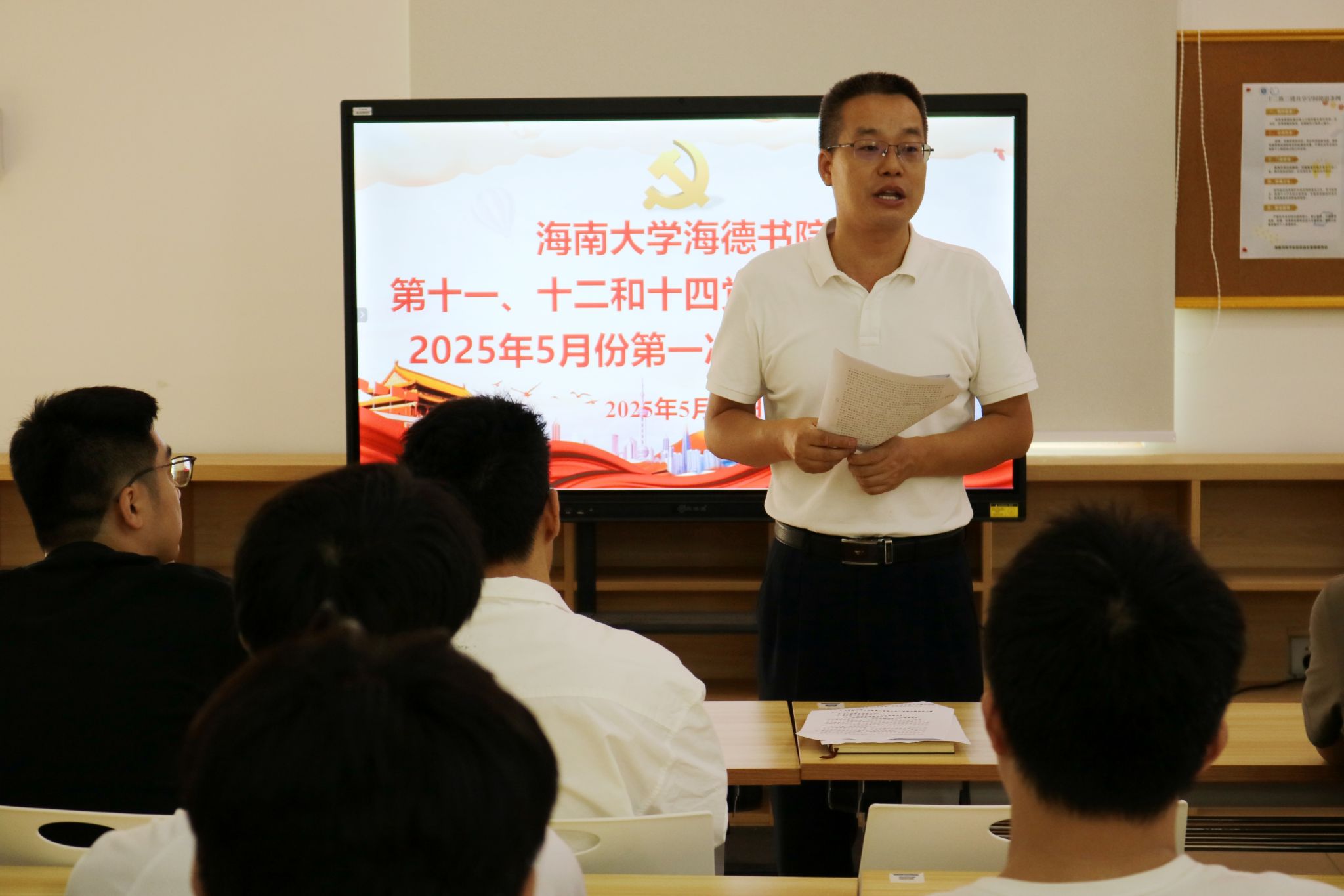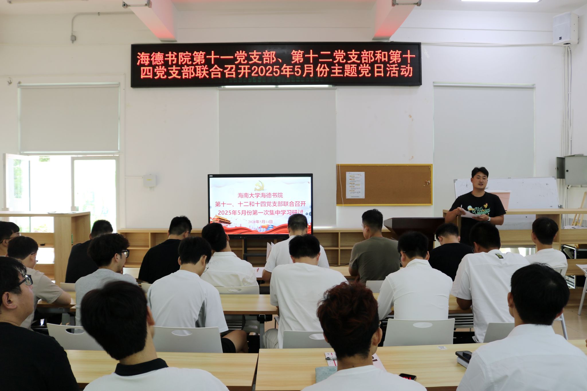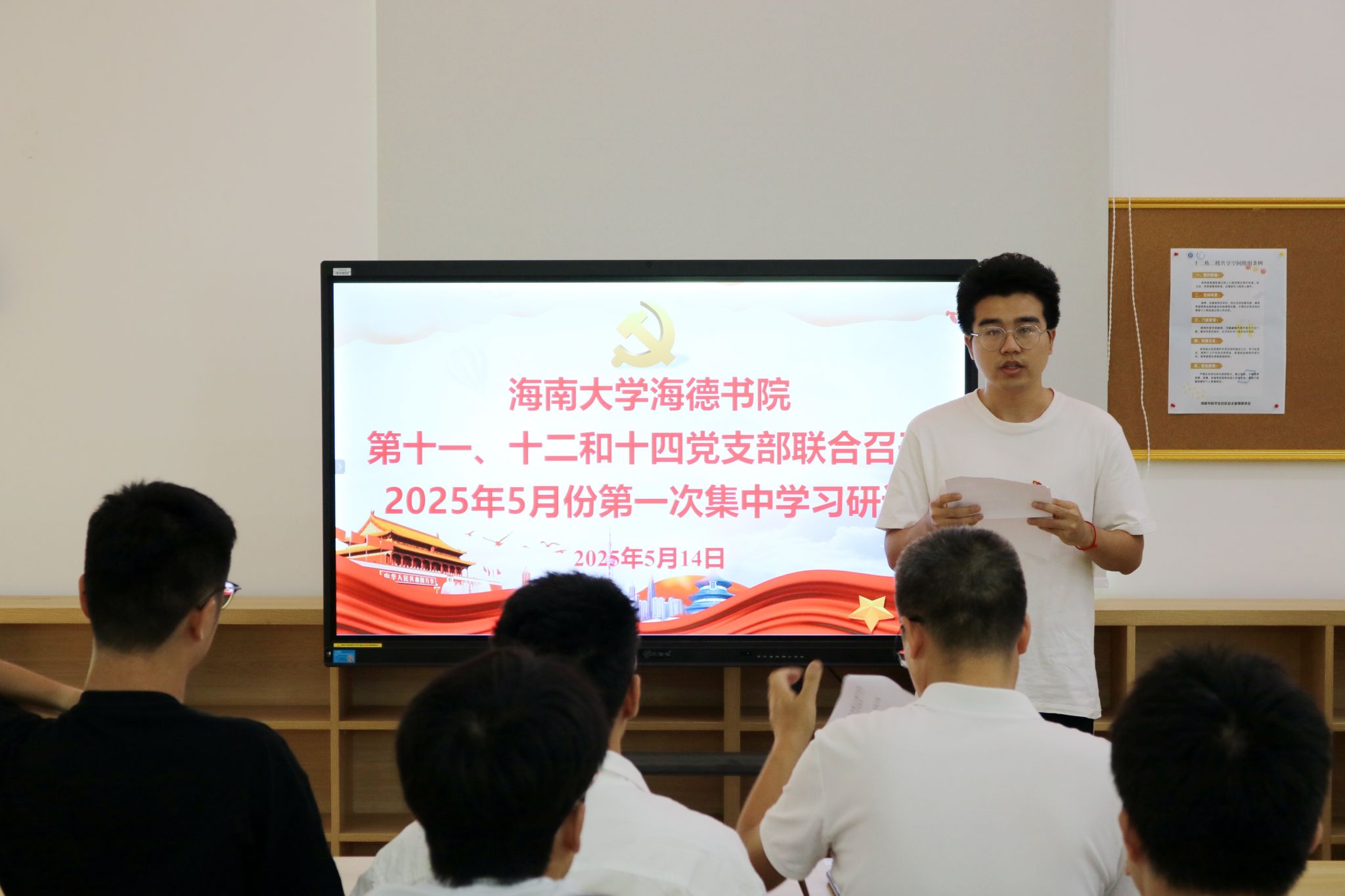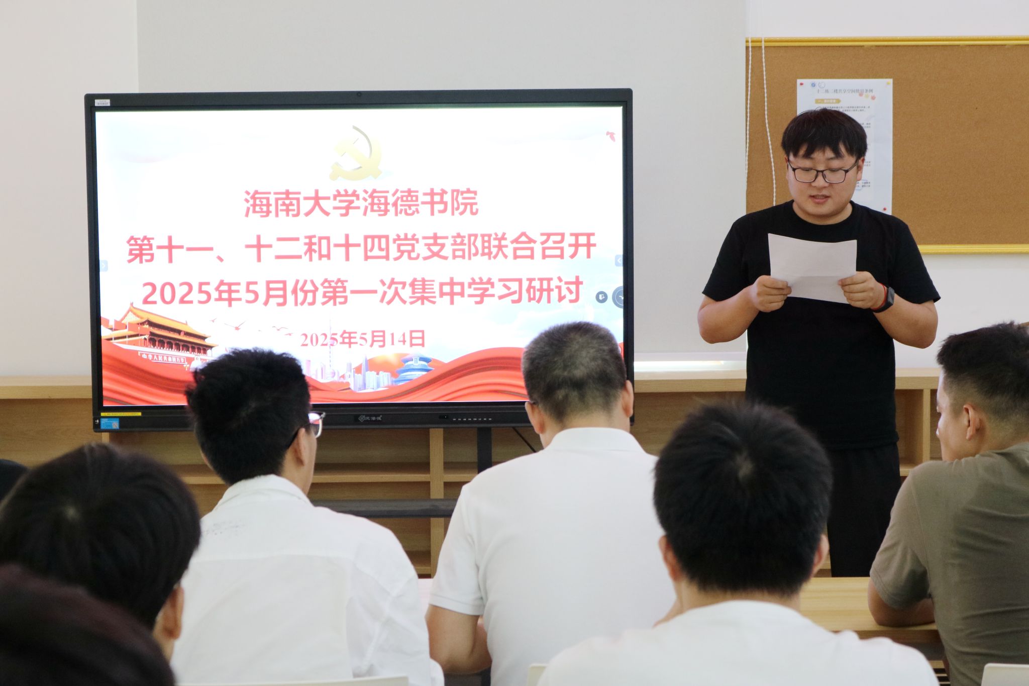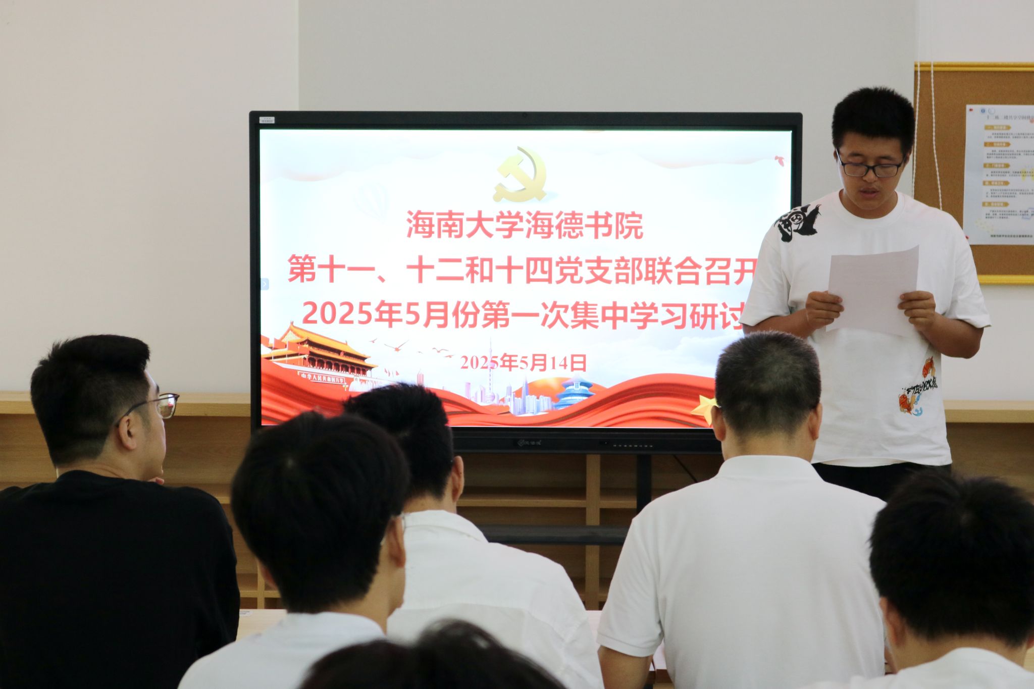 2025年5月14日,海南大学yl88858永利集团第十一党支部、第十二党支部和第十四党支部在12号楼二楼会议室联合召开了2025年5月份第一次集中学习研讨。各党支部委员及全体党员同志参会。