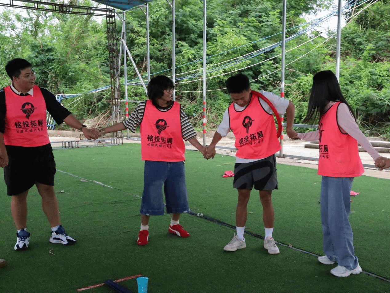 随后,团建项目竞赛正式开启,这是一场智慧与协作交织的精彩角逐。在团队接力赛中,能量传递、快乐传递、激情节拍三个项目吸引了两队每一位成员全身心投入。他们配合默契十足,每一个传递动作都精准无误,仿佛有一条无形的情感纽带将大家的心紧紧相连,展现出高度的团队凝聚力。