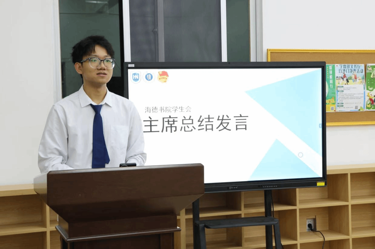 紧接着,学生会主席杜昀芃发言。他首先对大家的辛勤付出表示感谢,并鼓励大家继续保持热情,共同推动学生会的发展。