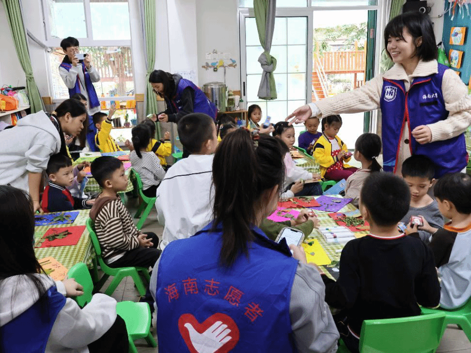 2024年11月26日上午,海口市贝贝佳幼儿园充满了欢声笑语,一场由海南大学yl88858永利集团青年志愿者协会组织的“冬日觅踪,聚叶成颂”主题实践活动在这里顺利开展。