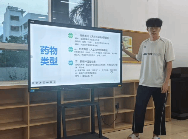 会上,高同学从青少年药物滥用的现状切入,围绕非法药物的四大类型,警示药物滥用对身体造成的损伤,以及引发焦虑抑郁、价值观扭曲等心理危害,强调其对个人社会功能和公共秩序的负面影响。