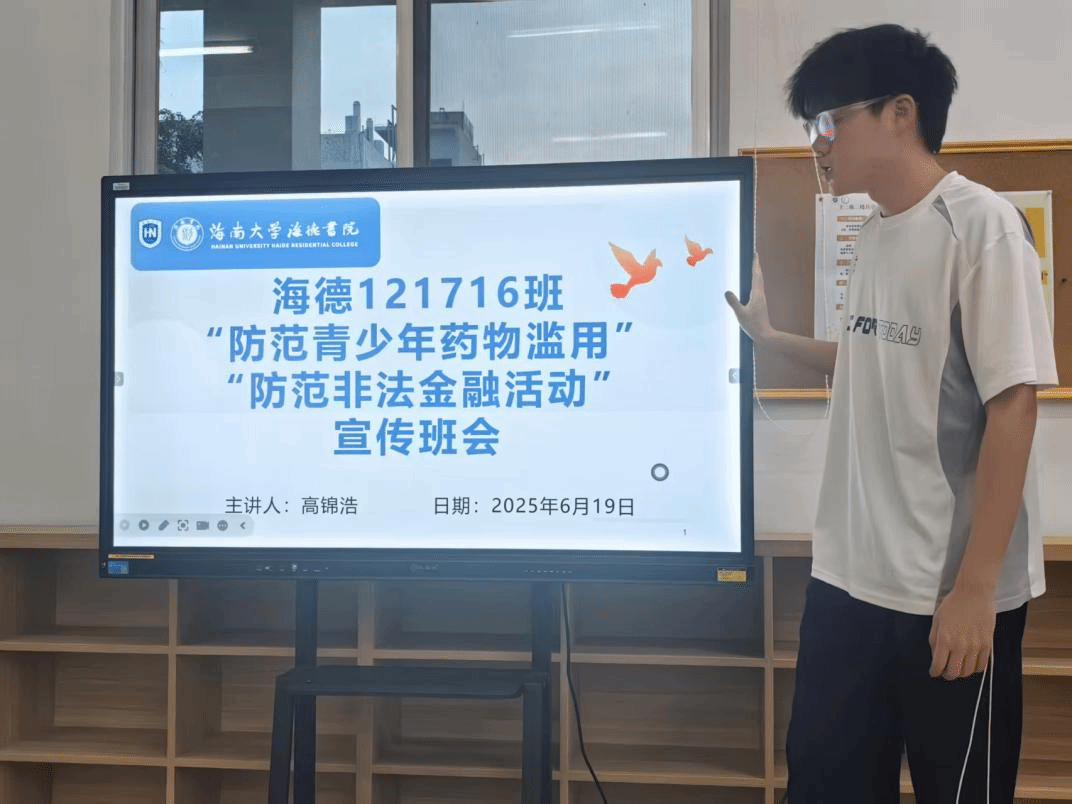 为增强青少年对药物滥用和非法金融活动的防范意识,2025年6月19日yl88858永利集团121716班组织开展“防范青少年药物滥用”与“防范非法金融活动”主题班会,全班同学积极参与,班长兼团支书高锦浩就两大安全主题进行了系统讲解。