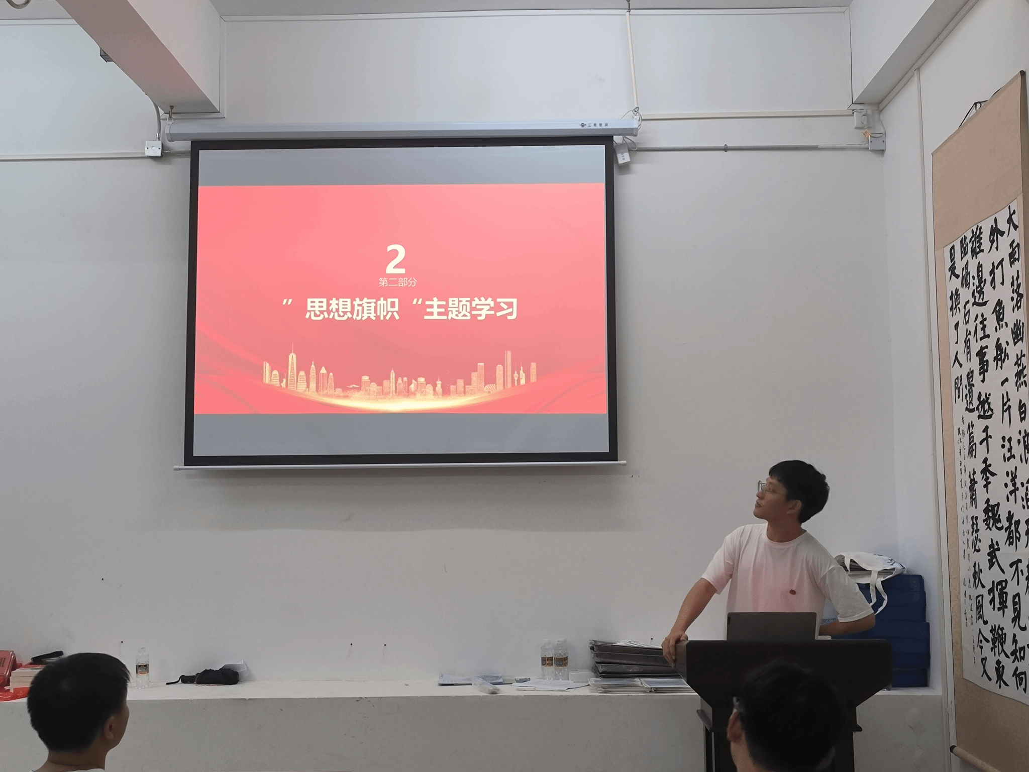 接下来进行的是“思想旗帜”专题理论学习。重点围绕“两个结合”“六个必须坚持”“十个明确”“十四个坚持”“十三个方面成就”等开展了学习研讨,不断增进对党的创新理论的政治认同、思想认同、理论认同、情感认同。