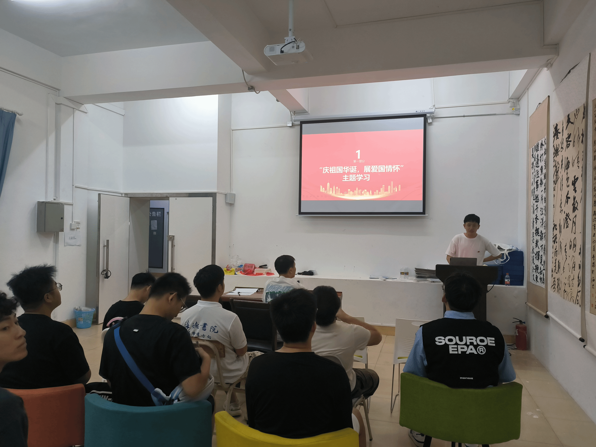第一个开展的是“庆祖国华诞,展爱国情怀”主题团日活动。团支部书记卢心河通过介绍国家近10年以来经济发展成就、社会建设成就等,引导团员青年自觉以习近平新时代中国特色社会主义思想武装头脑,深植家国情怀,培养爱国品质,不断增强做中国人的志气、骨气、底气,博学笃行、自强不息,投身强国建设、民族复兴的新征程。