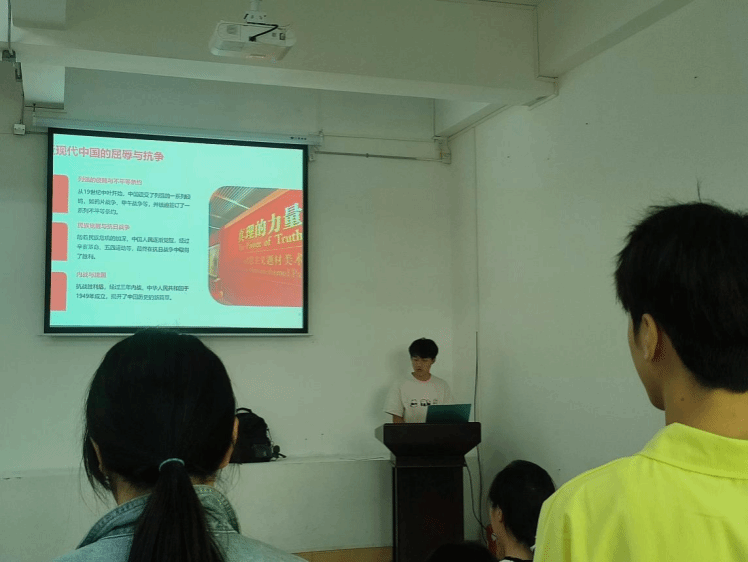 活动流程共四项; 第一项开场致辞。波澜壮阔欣回首,敢在人先再续征。高思豪同学首先从活动背景出发,通过简单的引入引发同学们的思考,紧接着点明了本次团日活动的目的:激发爱国热情、树立复兴信念、提高团队凝聚力。然后,他介绍了本次活动流程,与以往不同的是,本次团日活动增设了小组讨论和知识竞赛两个环节,活动的多样性成功的激发起同学们的参与热情。