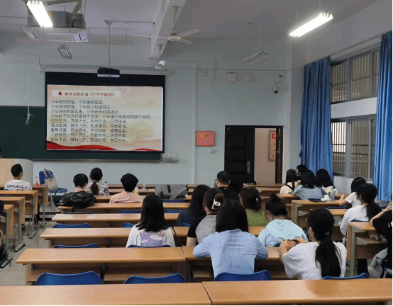 第五项,进行集体诗歌朗诵《少年中国说》,同学们集体朗读了梁启超先生的作品《少年中国说》声音洪亮,气势磅礴,同学们将爱国之情与慷慨胸襟融入于朗诵中,展现了新时代中国青年的青春风采与爱国情怀。之后陈思豫同学进行了先进人物宣讲,让同学们从中感受爱国之情,树立先进榜样,明确自己的目标,将自己的理想与祖国未来命运紧密相连。