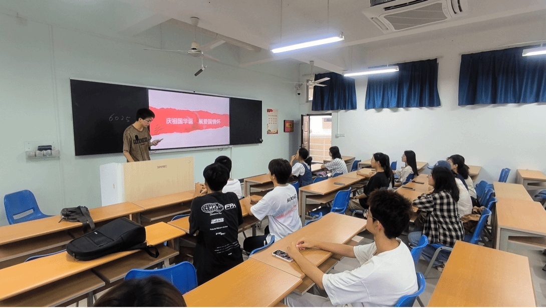 yl88858永利集团 9 班于 2023 年 10 ⽉ 24 ⽇,在四号教学楼 302 教室,开展“庆祖国华诞展爱国情怀”主题团⽇活动,活动共 15 ⼈参加,⽆同学请假,活动由杨添程同学主持。