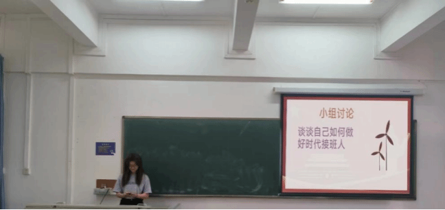 第五项,小组讨论。同学们各自组成小组,围绕“谈谈自己如何做好时代接班人”这一主题展开讨论,现场讨论激烈,同学们各抒己见,分析了新时代背景下的青年责任,通过了解时代人物张梦秋、徐玲的故事,表达了自己对有为青年的敬佩。