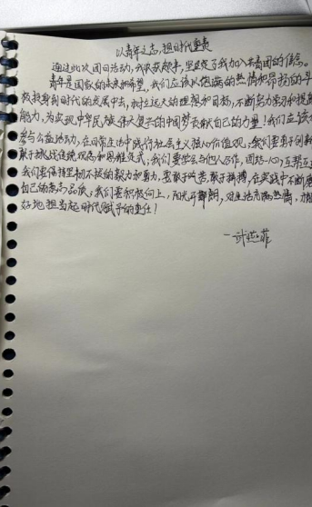 最后,同学们将自己的感受都诉诸于笔端,将对国家的热烈的爱意用一笔一划表达了出来。