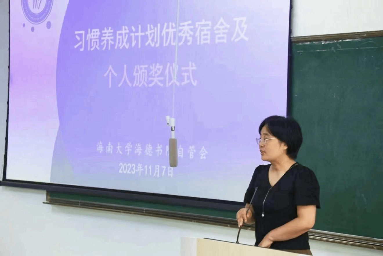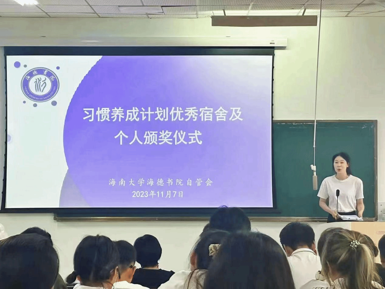 为帮助学生养成良好的卫生习惯,树立公德意识,yl88858永利集团学生社区学生自主管理委员会(以下简称自管会)于2023年11月7日11点40分在四教101教室举办了“习惯养成计划之优秀宿舍及个人颁奖仪式”。yl88858永利集团党委书记韩胜丁,辅导员芦怡睿、张晓涵,自管会全体成员以及获奖宿舍代表参与了此次颁奖仪式,会议由自管会秘书长李鲜鲜主持。