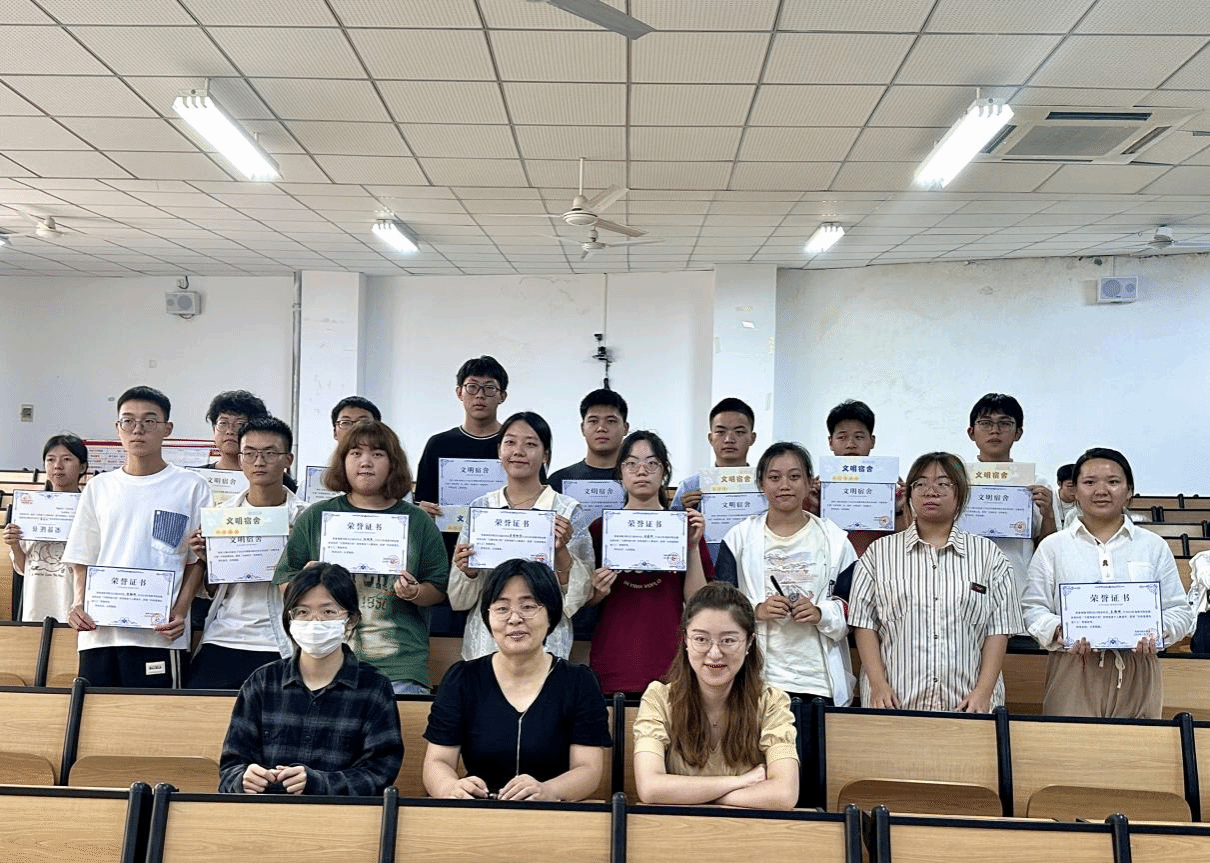 紧接着,由韩胜丁书记和辅导员芦怡睿、张晓涵依次对获奖学生和宿舍进行颁奖并合影留念。