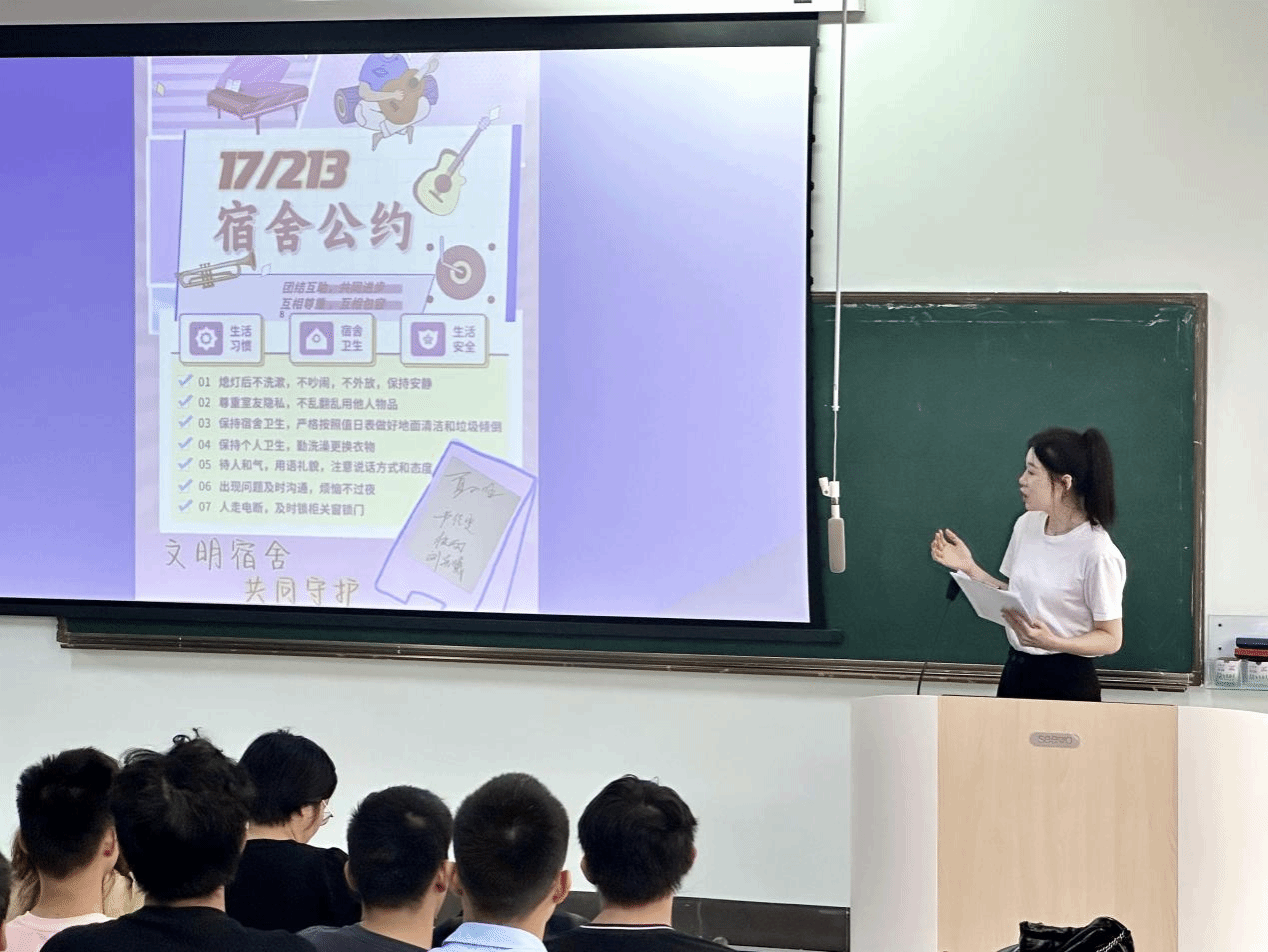 随后,同学们共同欣赏了本次获奖宿舍以及优秀宿舍公约的照片,获奖的宿舍有:17-213、17-221、17-304、17-229、17-231、17-308、12-419、12-426、12-418、12-425、12-443、12-428、12-434、12-448。获得个人奖项的有:皇甫瑶倩,任研杰,刘嘉怡,张美琳,陈韬羽,王海珊,卫倩雨,叶子莹,林歆宜,高逸利,詹梦蕊,薛琼彩,蒋欣然,桂咏玲,吴允东。