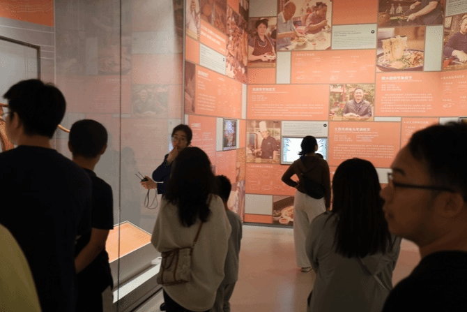 在讲解员的引导下,同学们置身于展馆中,近距离接触了龙塘雕刻、椰胡制作等海南特色非遗技艺。