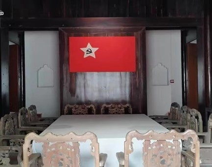 悬挂在八仙桌上方的红旗
