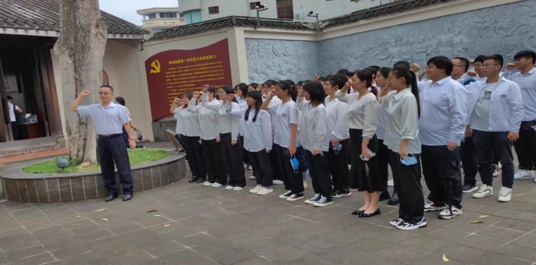 一进门,展现在眼前的是中共琼崖一大会址——邱氏祖宅。学员们在中共琼崖一大会址的庭院里对着入党誓词庄重神圣的宣誓。