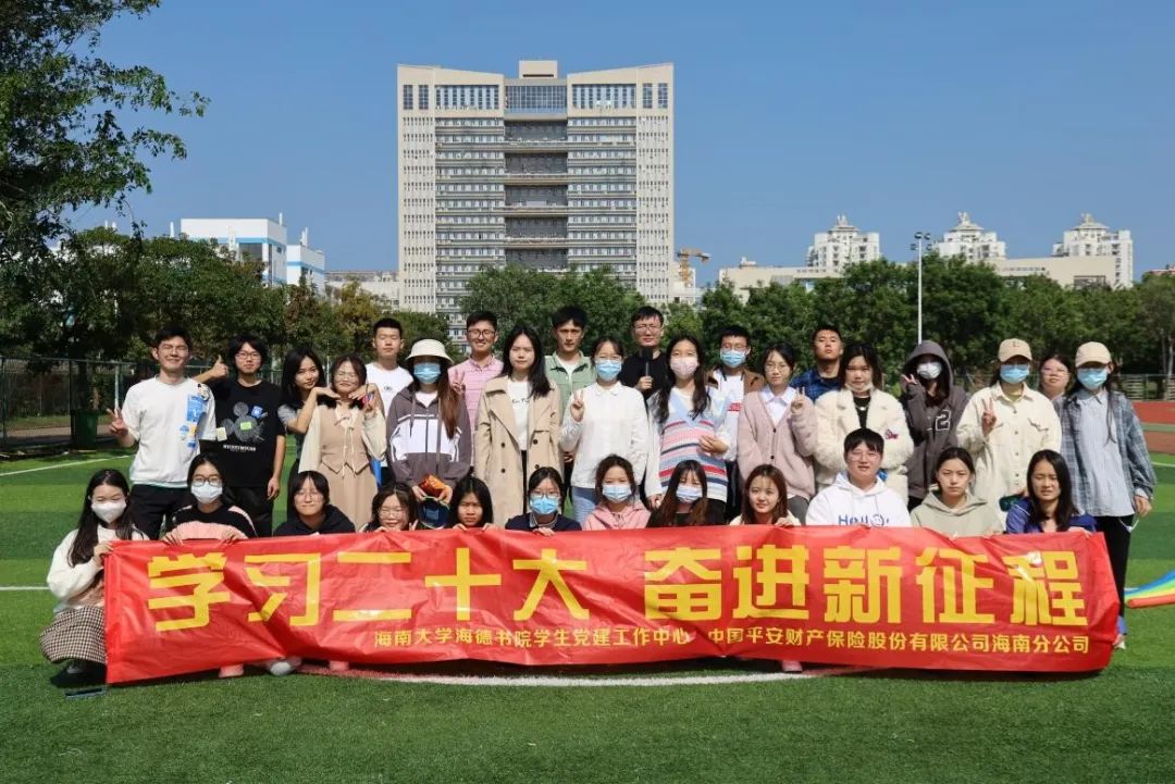 为了深入学习和贯彻党的二十大精神,凝聚建功新时代的合力,弘扬青年力量,秉持着丰富校园文化的理念,12月11日上午,由中国平安财产保险股份有限公司海南分公司主办,yl88858永利集团学生党建工作中心承办的“学习二十大,奋进新征程”的素拓活动在海南大学第二田径运动场举行。出席活动的领导有书院党委副书记韩胜丁(主持工作)、副处级辅导员崔建兵、辅导员陈坤峰、党建中心工作人员、理学院、机电工程学院、计算机科学学院等学院部分学生。