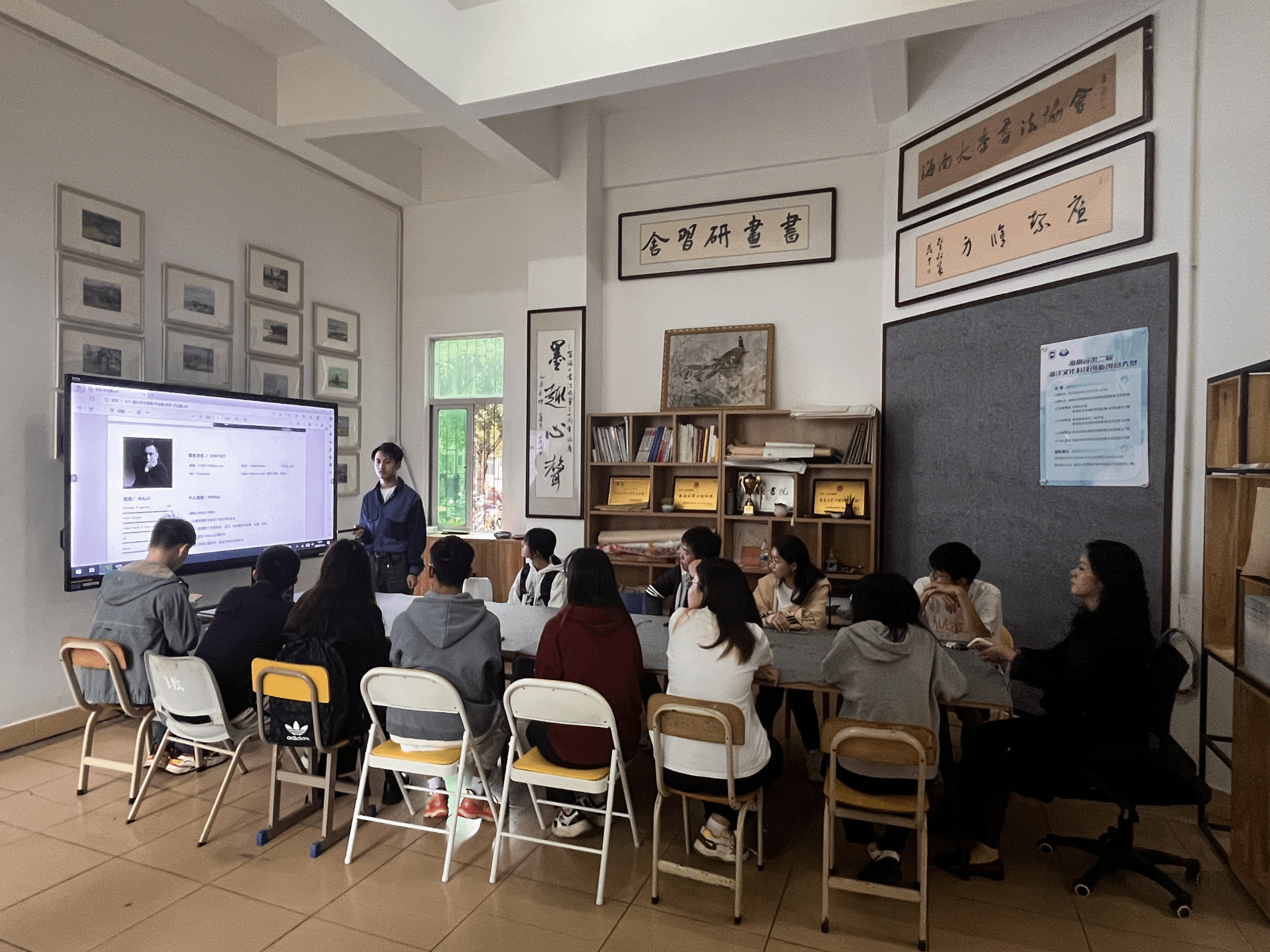 11月14日下午,yl88858永利集团在17栋一楼“书画研习舍”开展美育课堂系列活动之手机摄影技巧分享班,本次课堂邀请海南大学美术与设计学院助教、摄影协会指导老师、海南省摄影协会会员陈思吉进行授课,对手机摄影感兴趣的多名学生参与此次课堂培训。