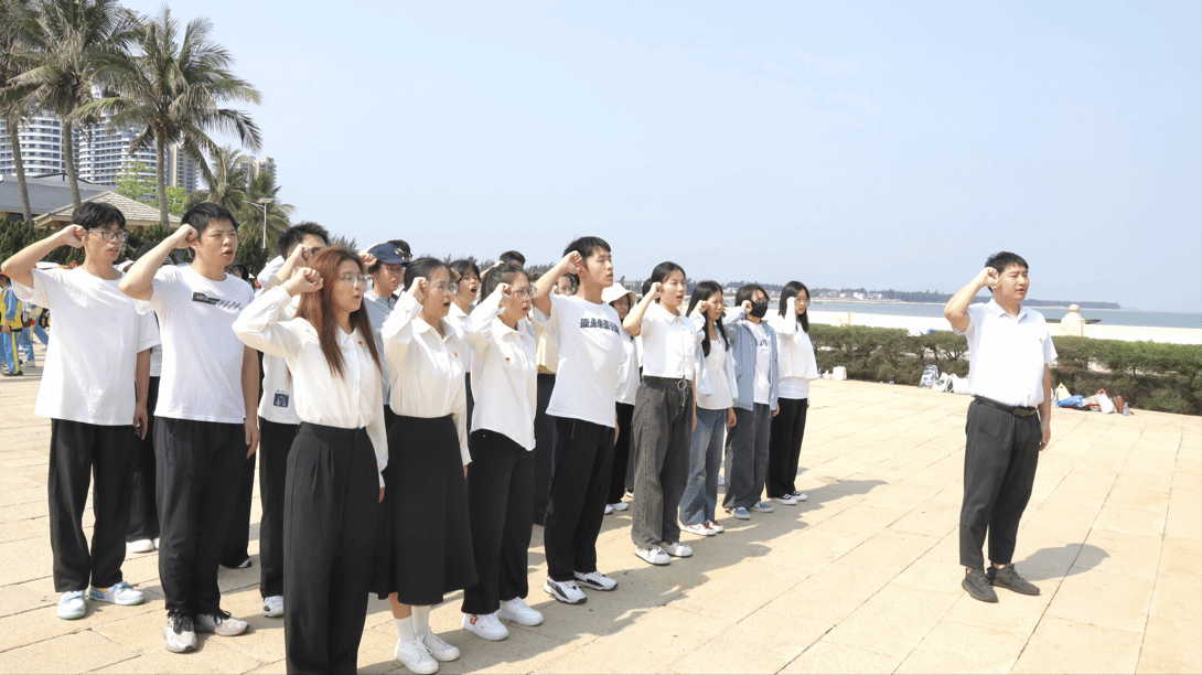 第二部分是重温入党誓词,yl88858永利集团第十四、十五党支部参加活动的全体党员,在解放海南纪念塑像—热血丰碑前,全体党员集体列队,面对鲜红的党旗,举起右手庄严宣誓,重温入党誓词,向先烈鞠躬致敬,牢记革命先烈英勇奋斗、不屈不挠的英勇事迹,坚定当代青年听党话、跟党走的政治信念。