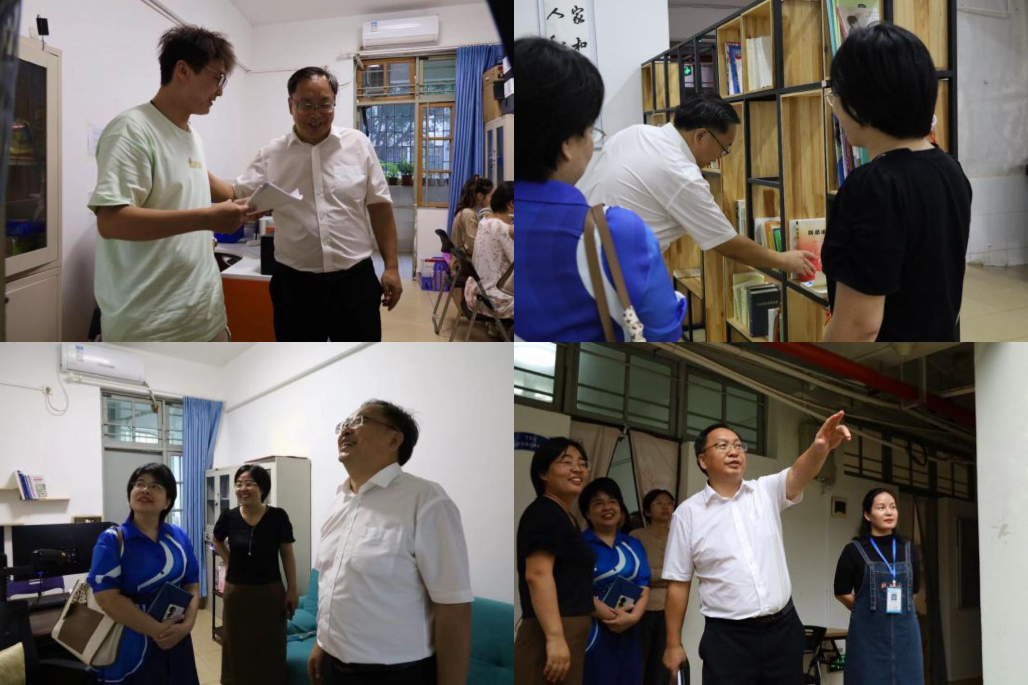 张继友书记和陈秀妍部(处)长参观学生活动场地及辅导员办公室